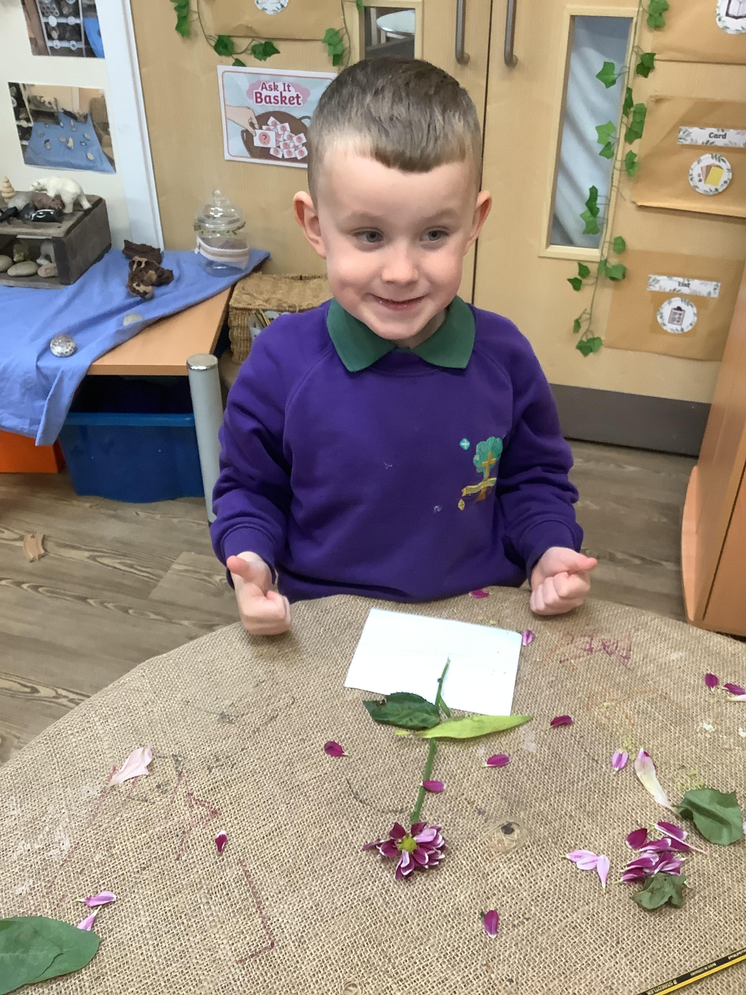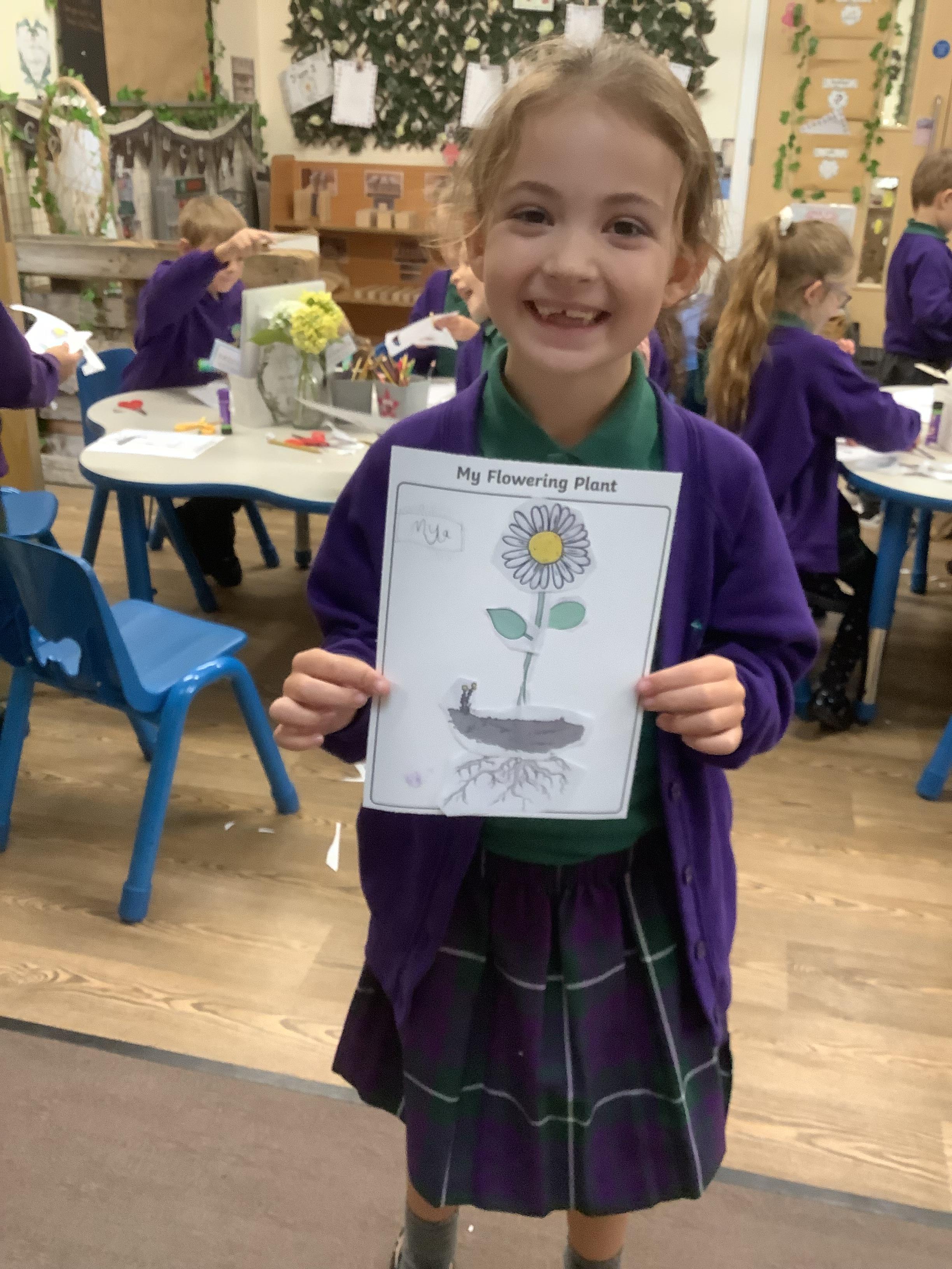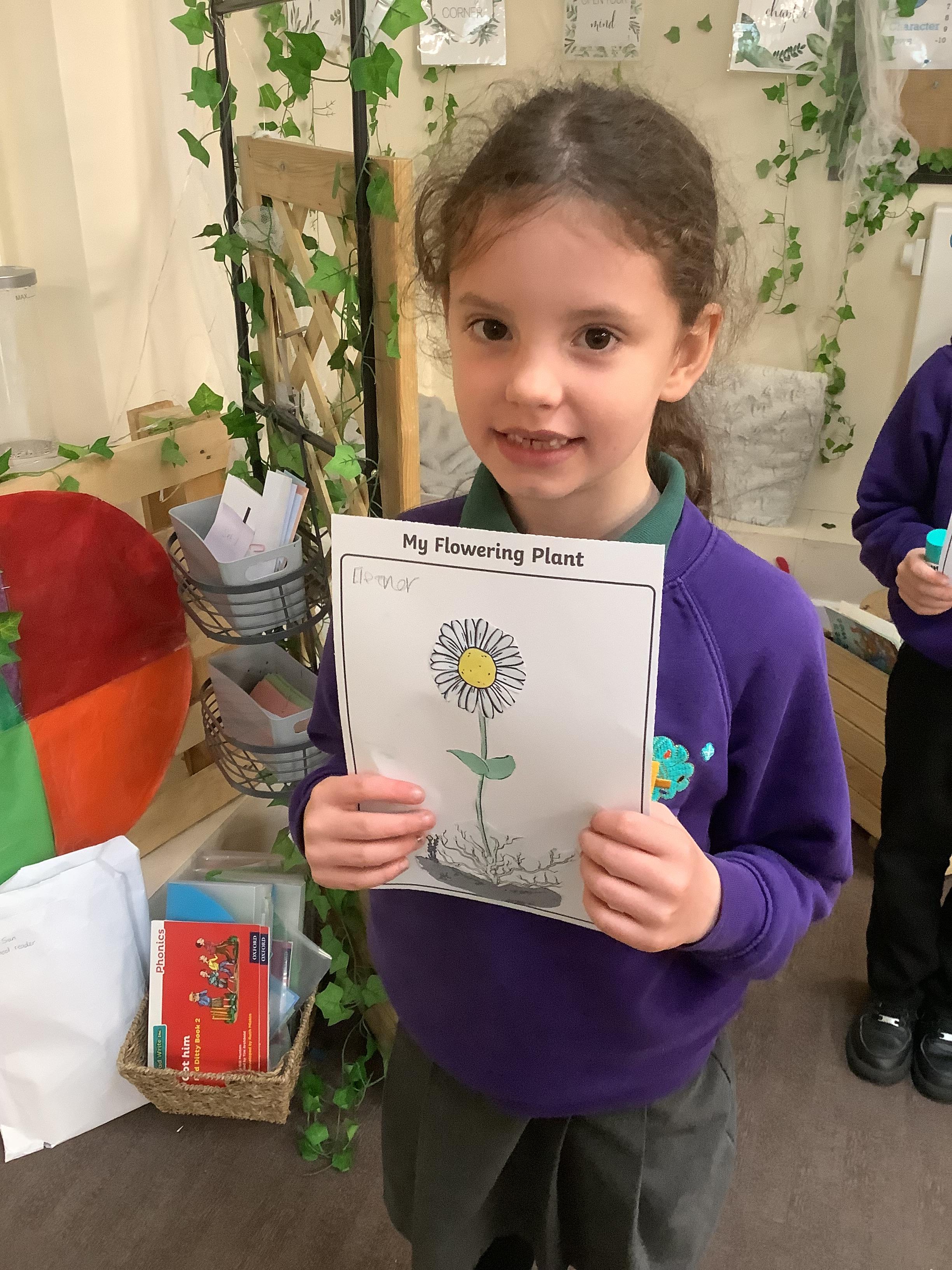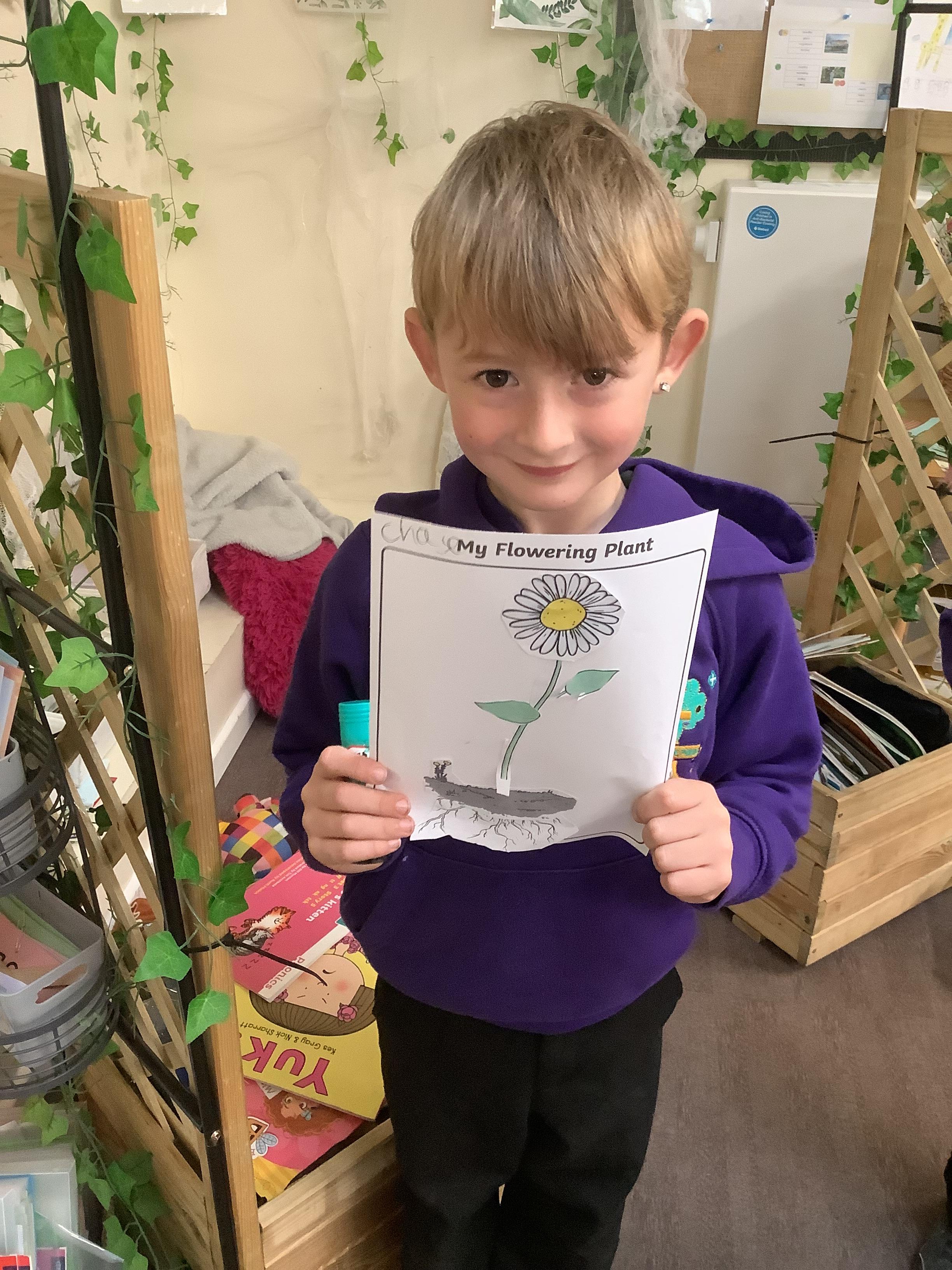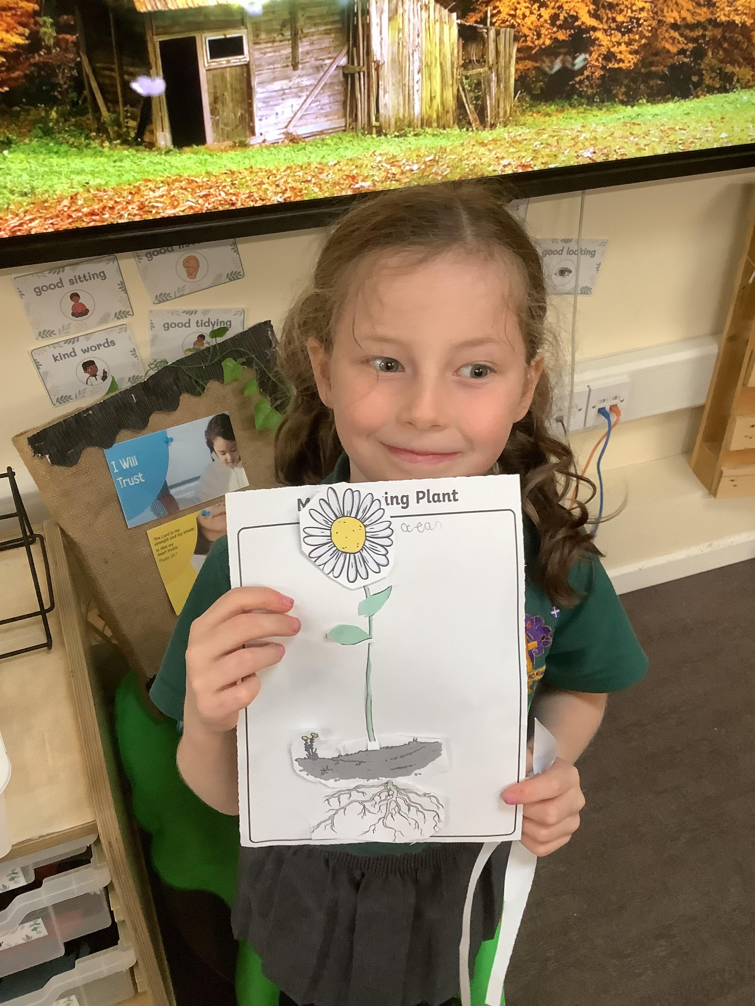 The children have been learning about plants. They used different flowers to create their own plant. Using post it notes the children then had to label and describe the different parts and functions of a plant.