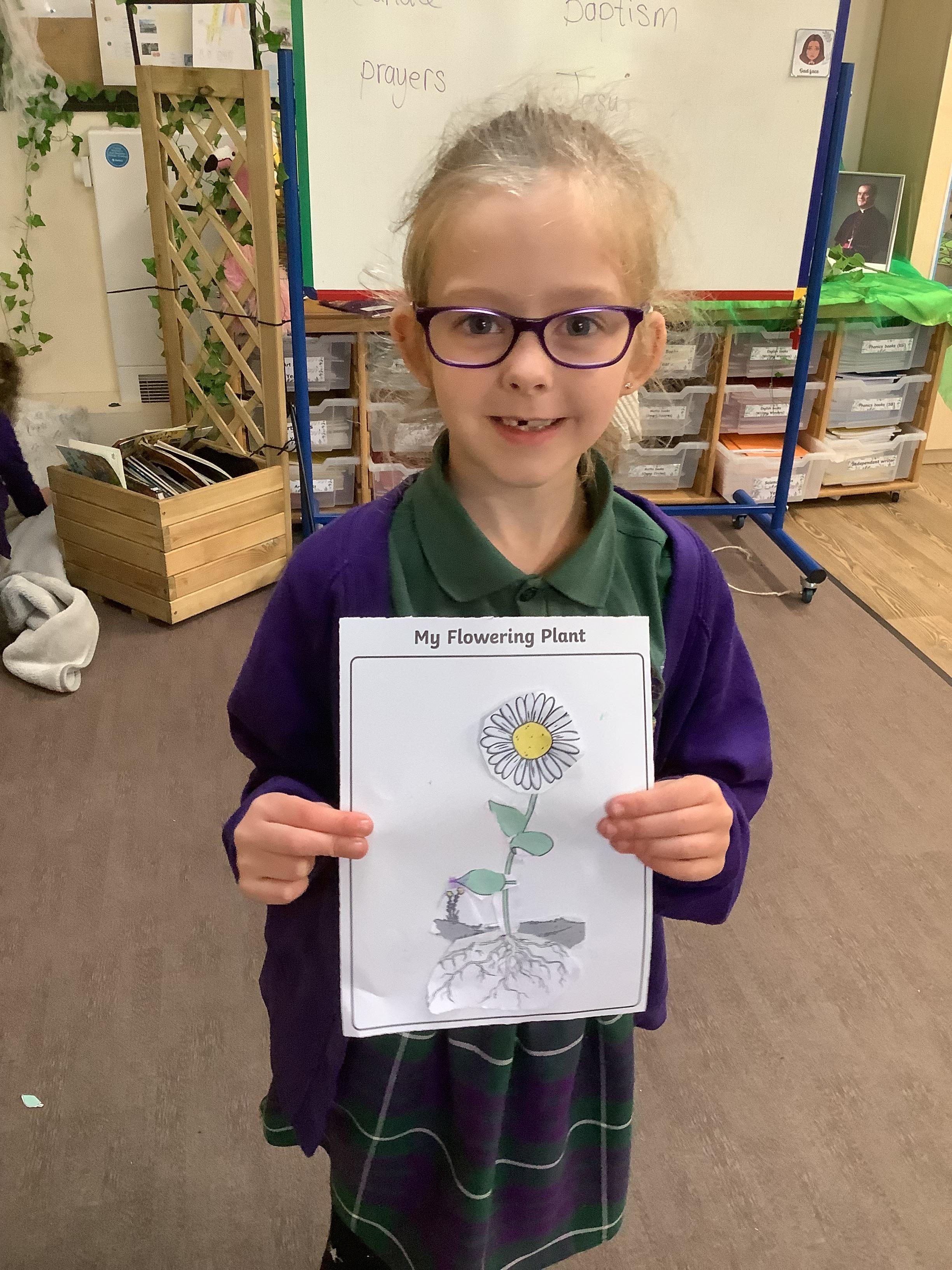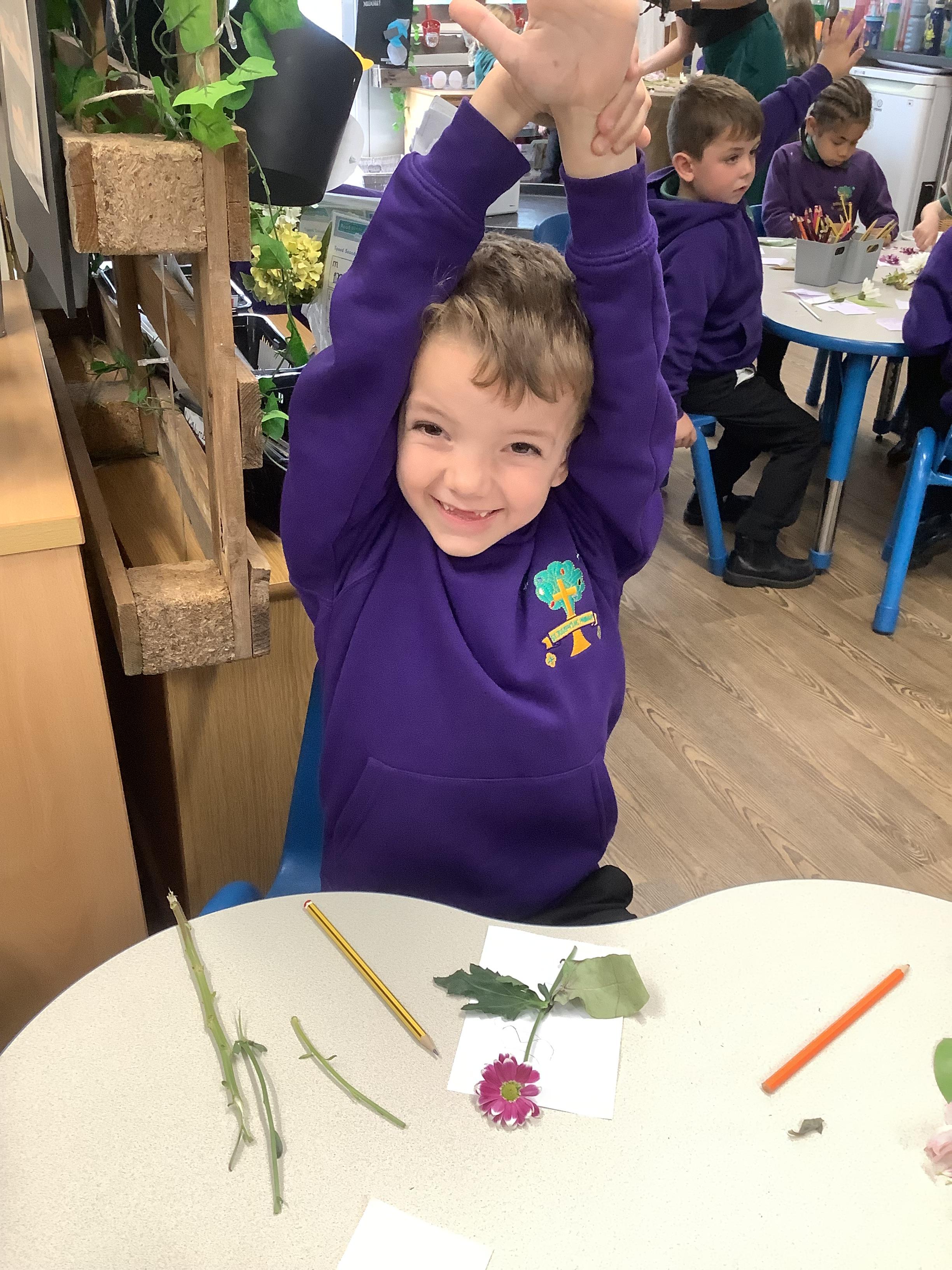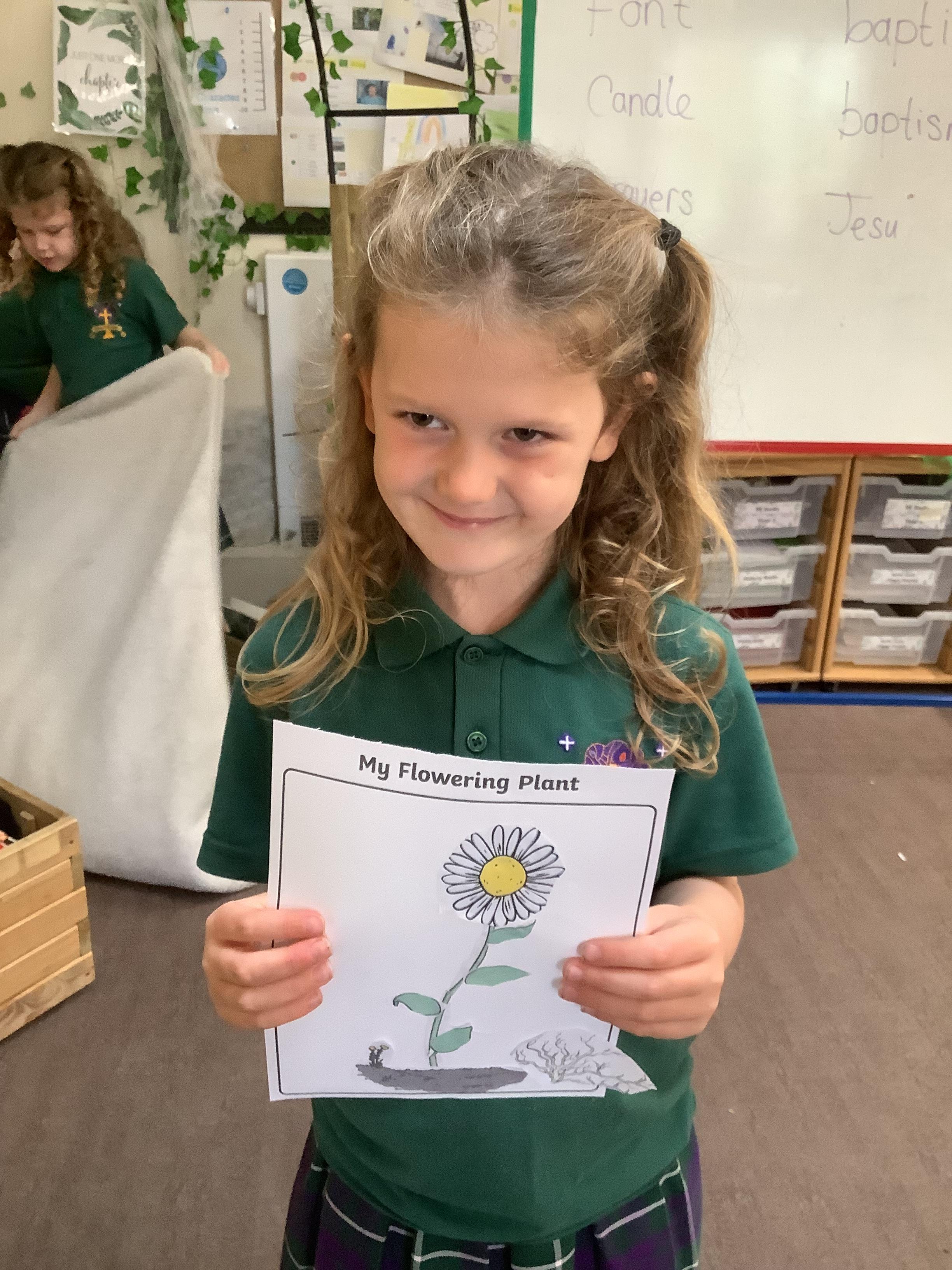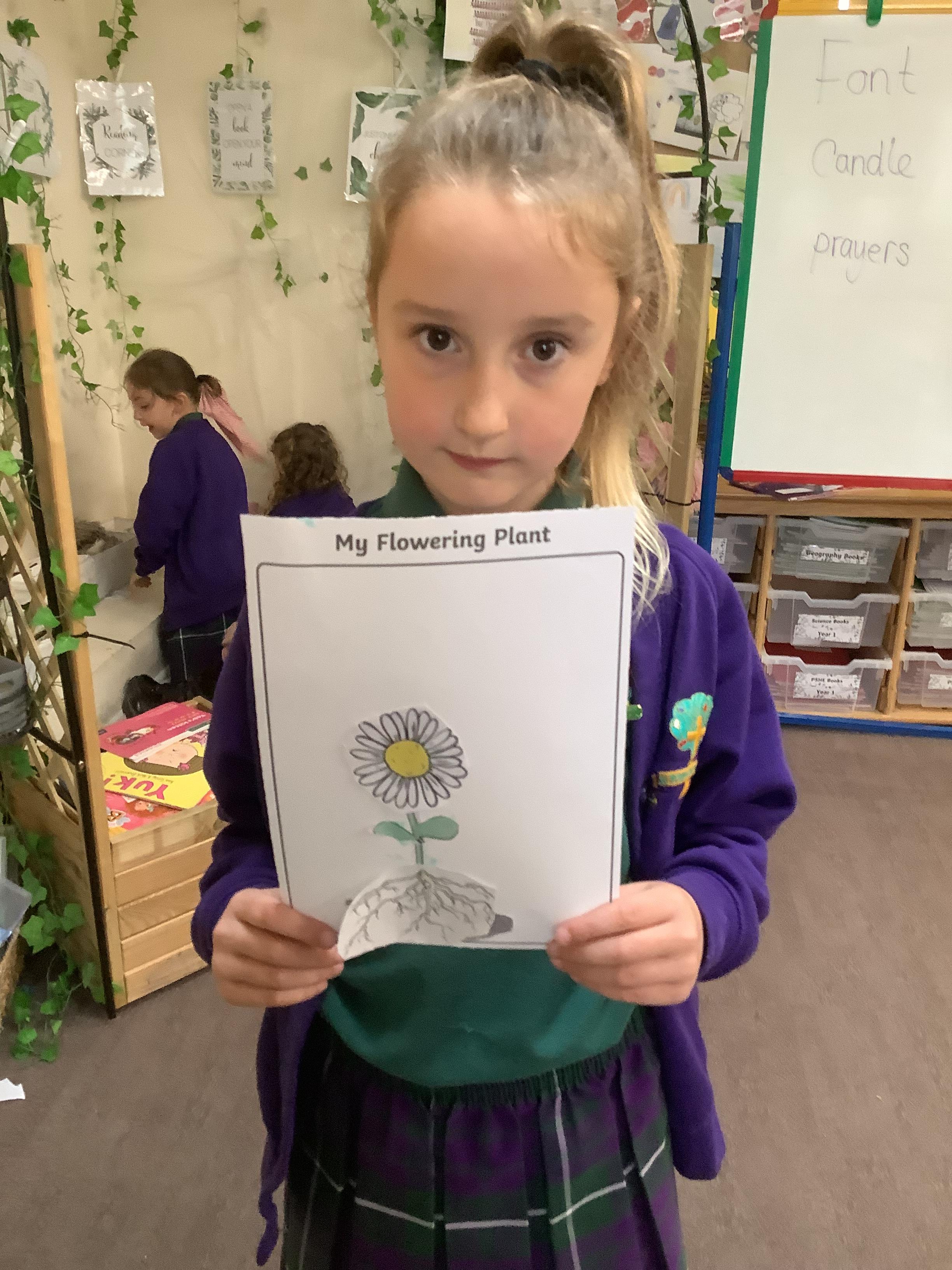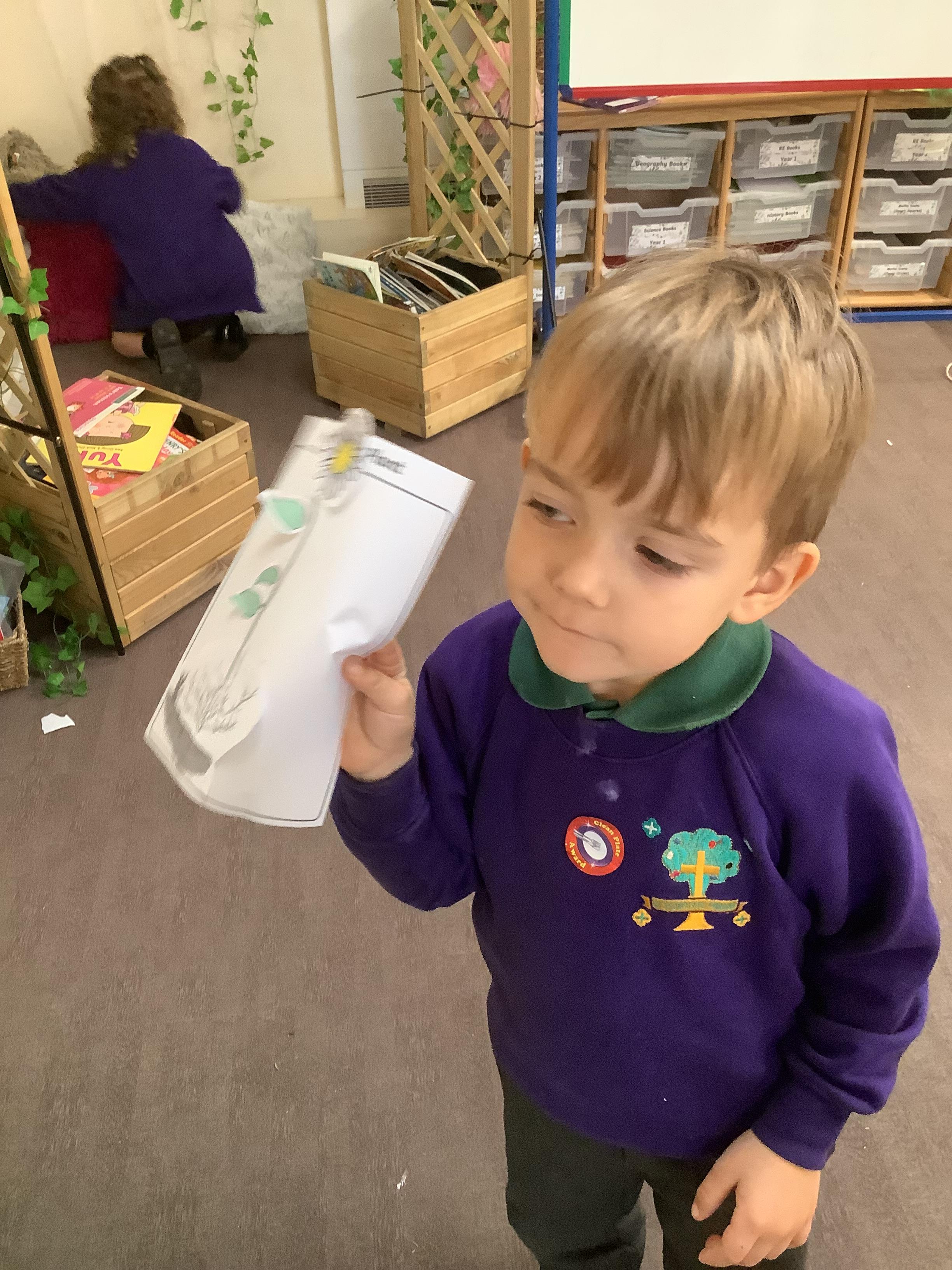 The children have been learning about plants. They used different flowers to create their own plant. Using post it notes the children then had to label and describe the different parts and functions of a plant.