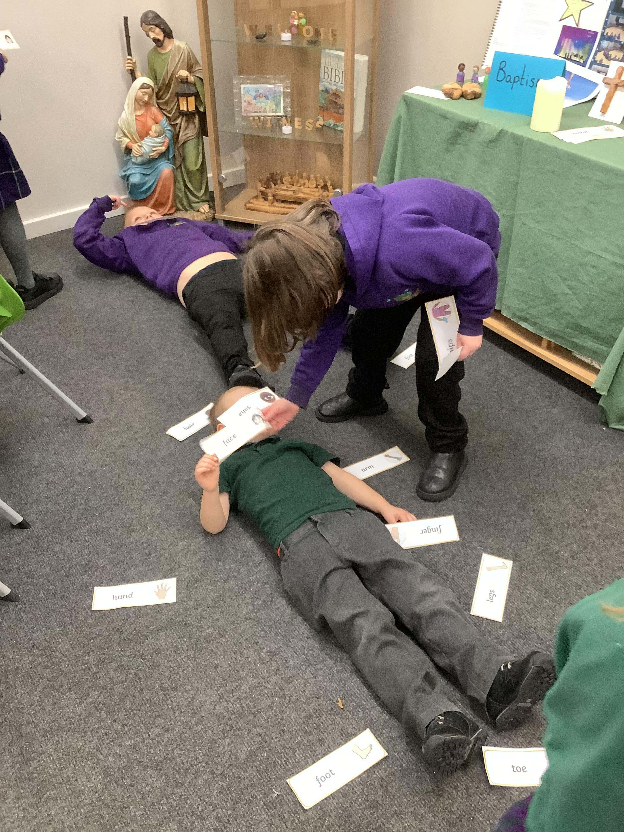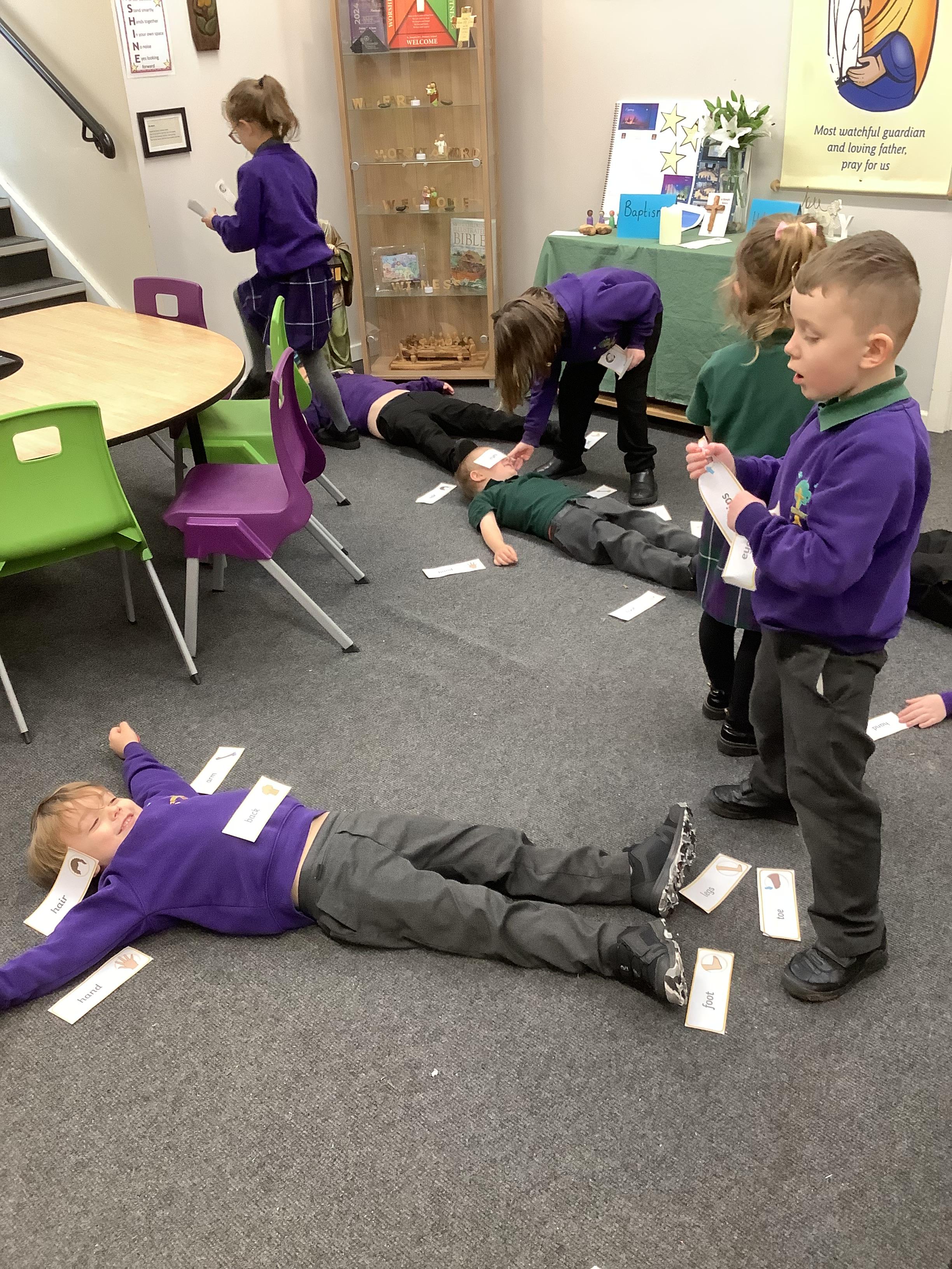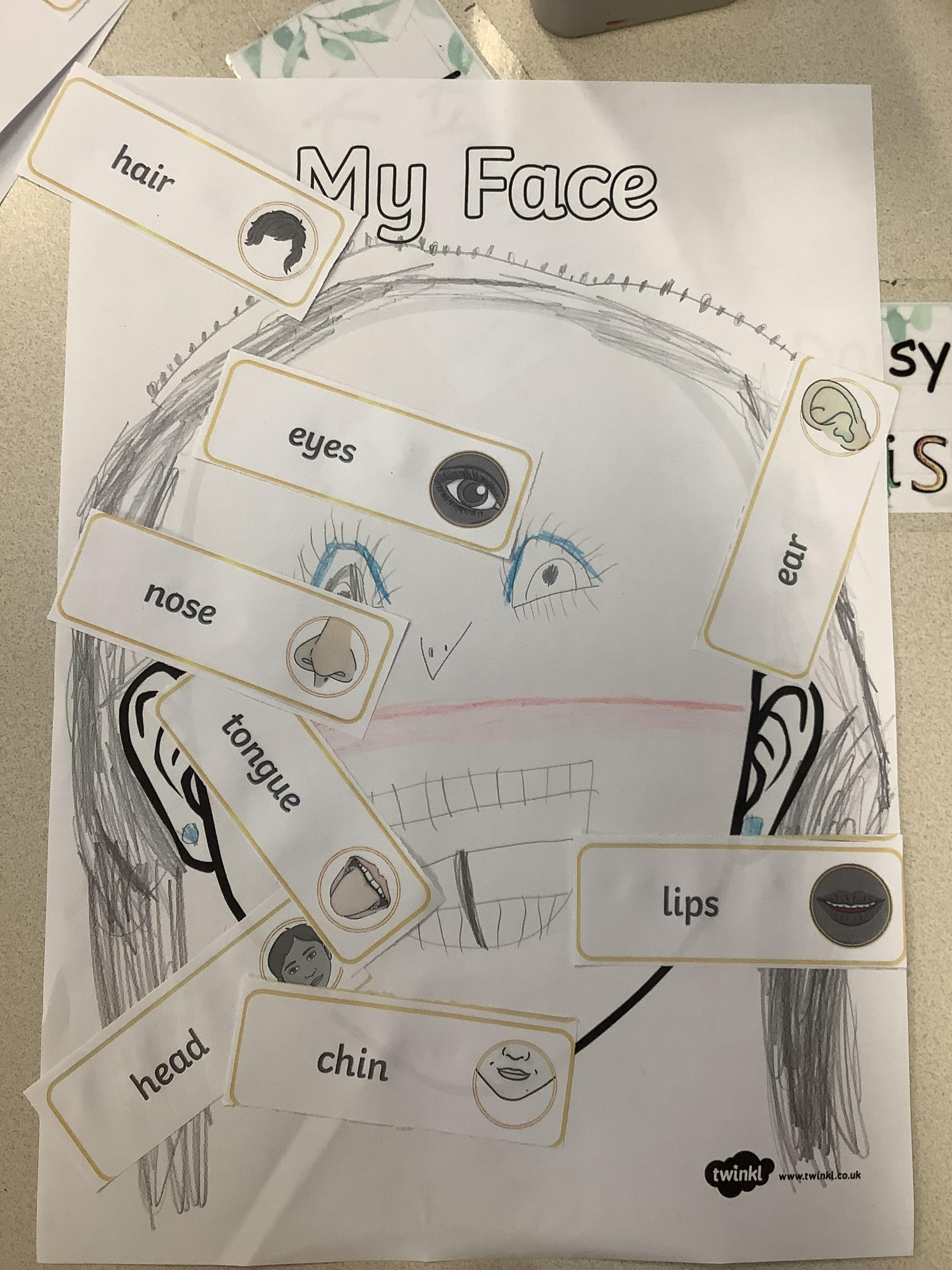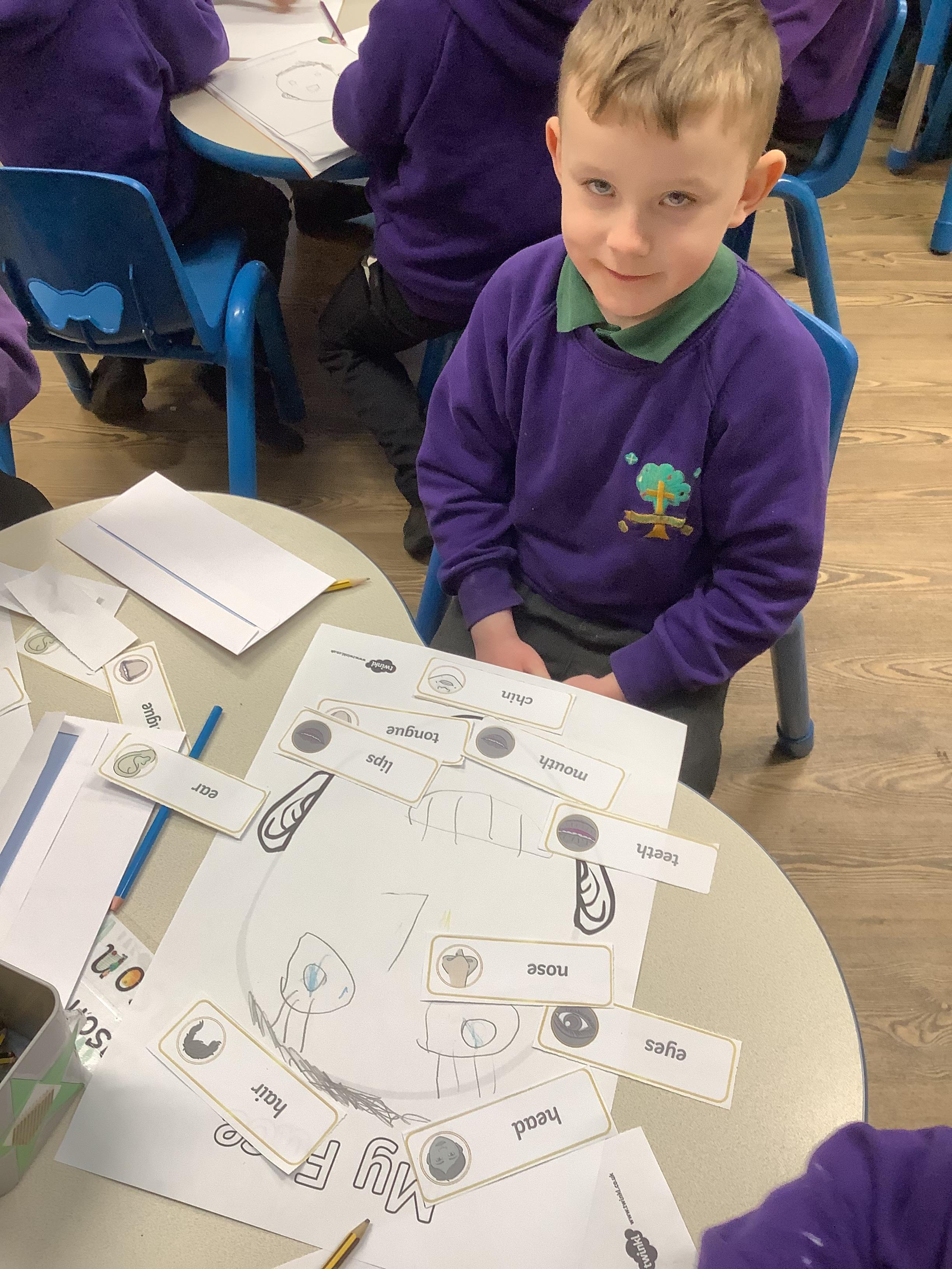 The children have been learning about the 5 senses. We discussed which body part is connected to each sense.