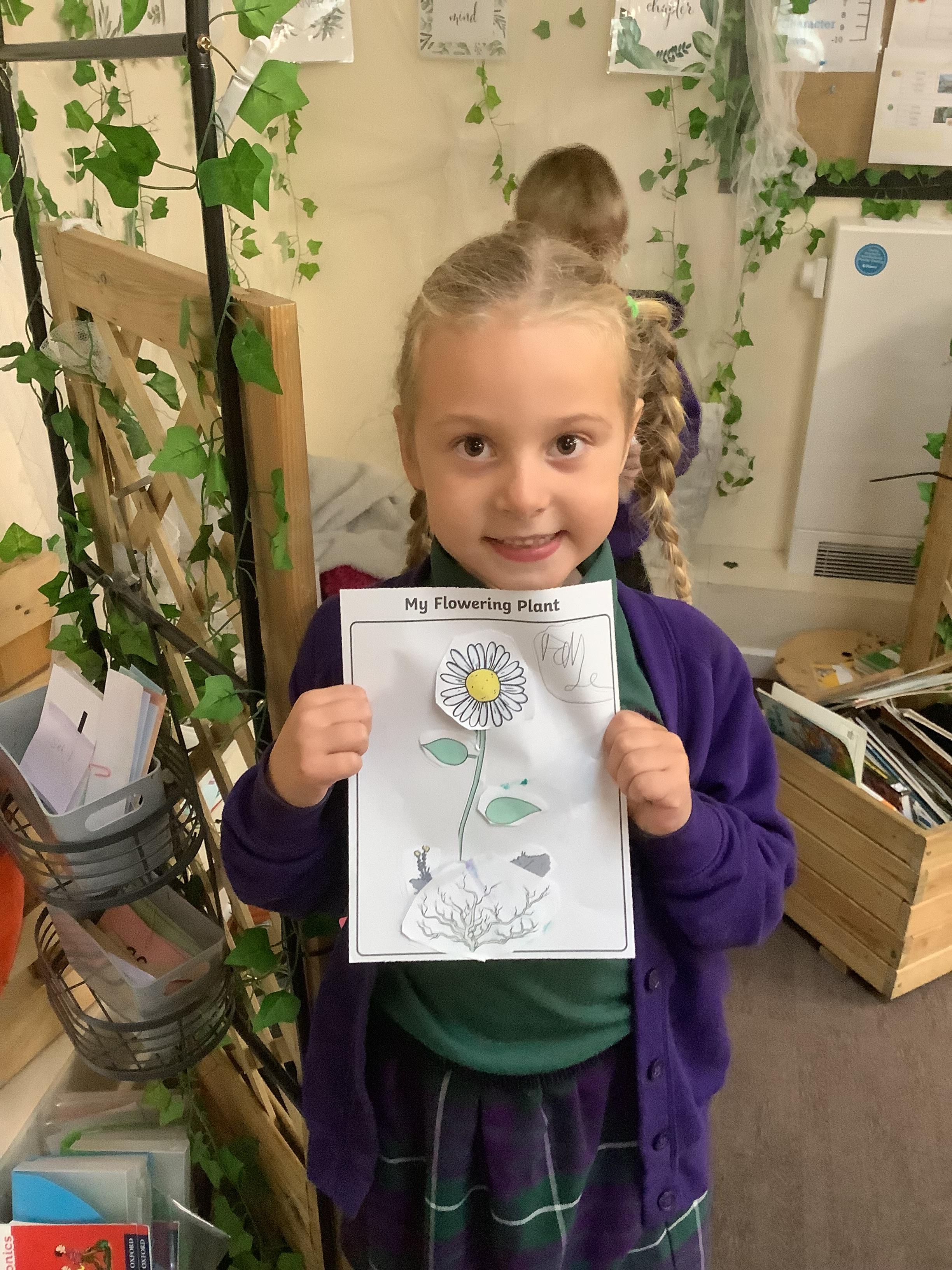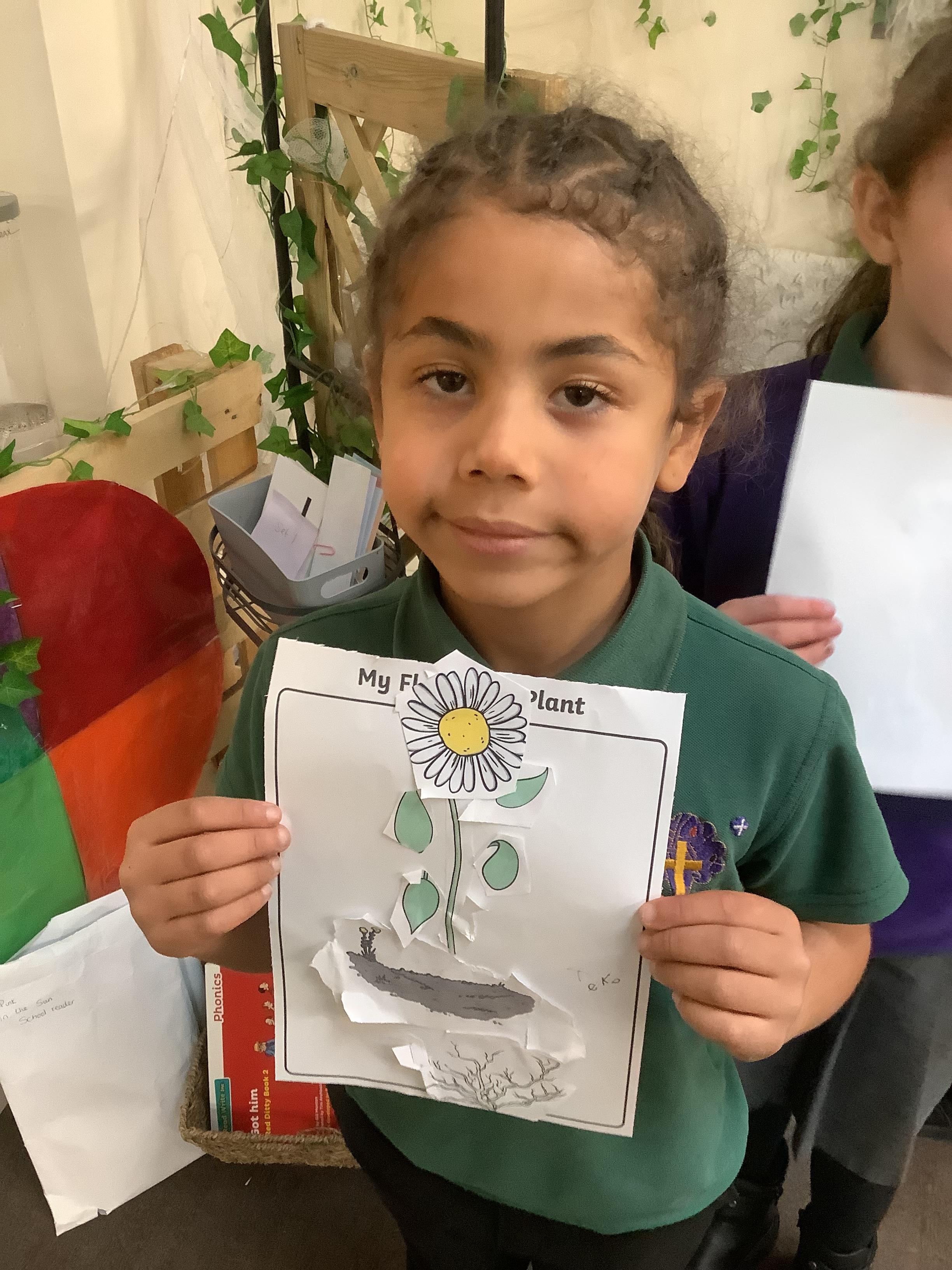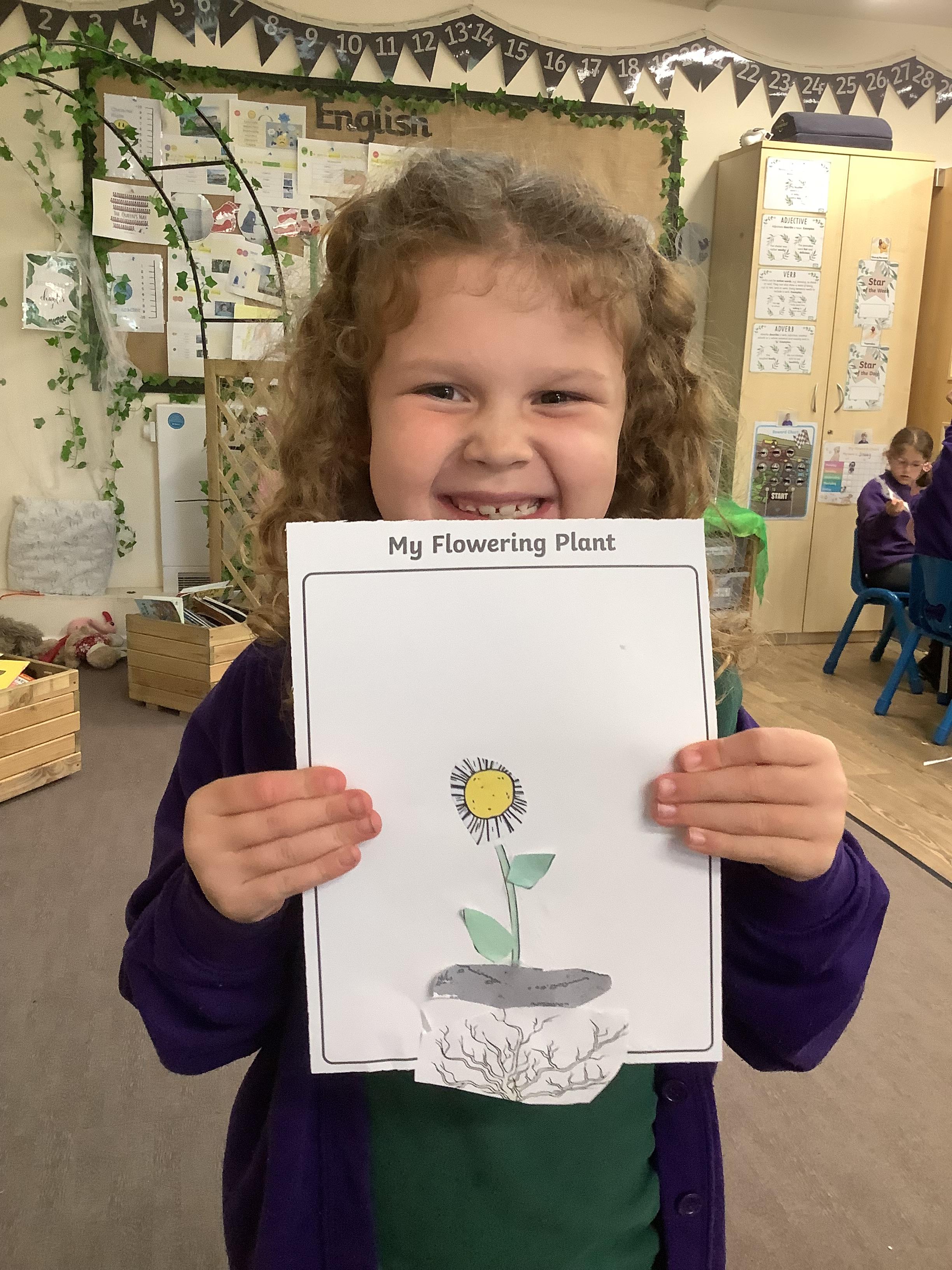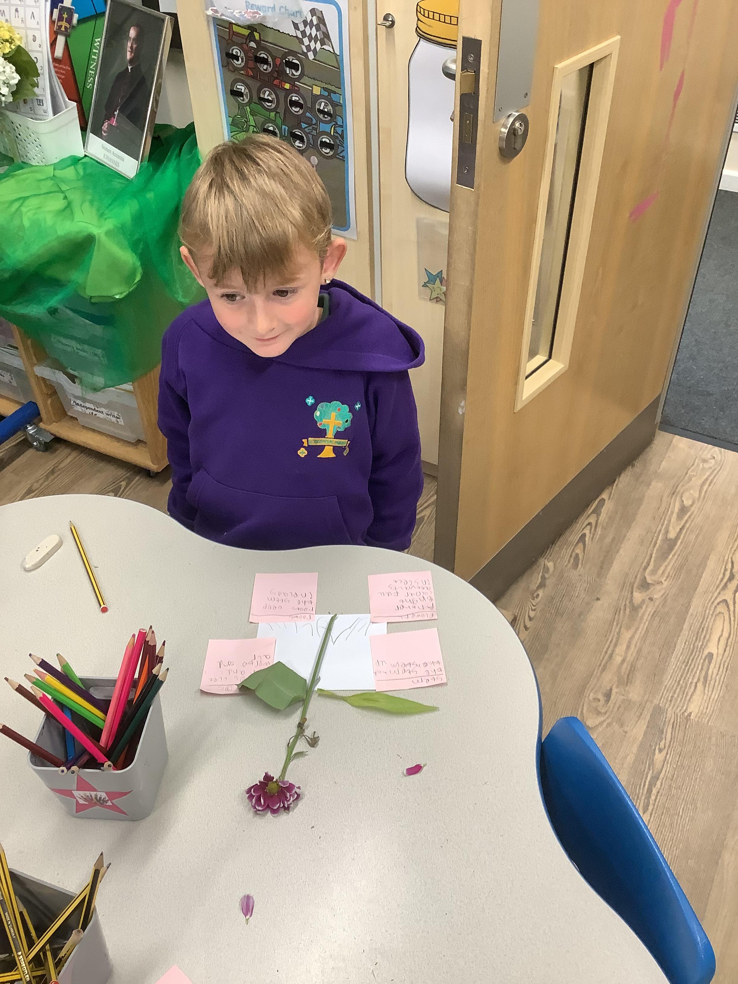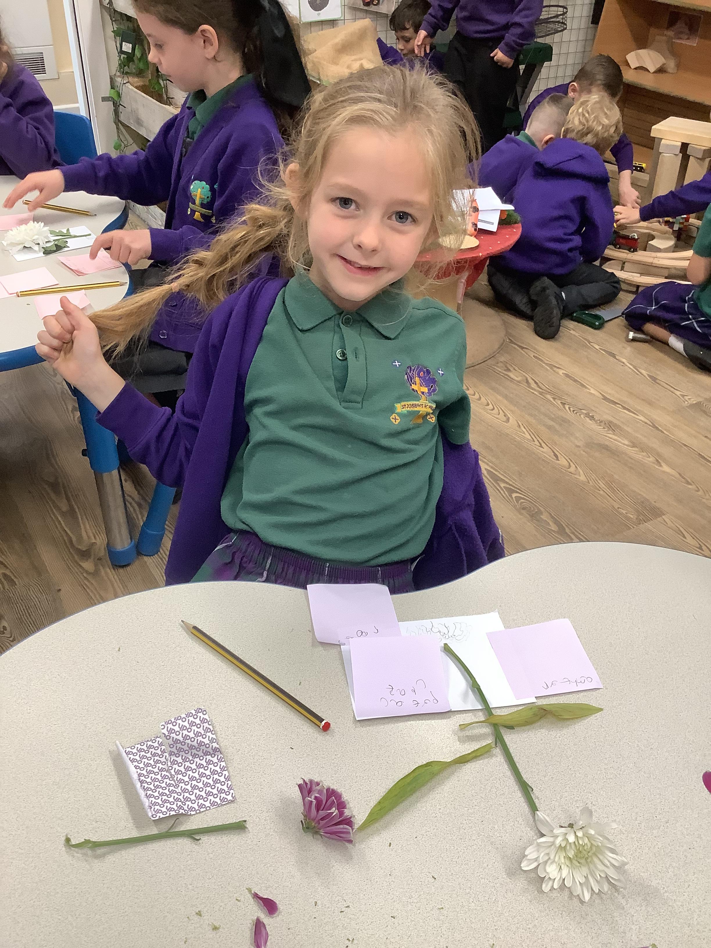 The children have been learning about plants. They used different flowers to create their own plant. Using post it notes the children then had to label and describe the different parts and functions of a plant.