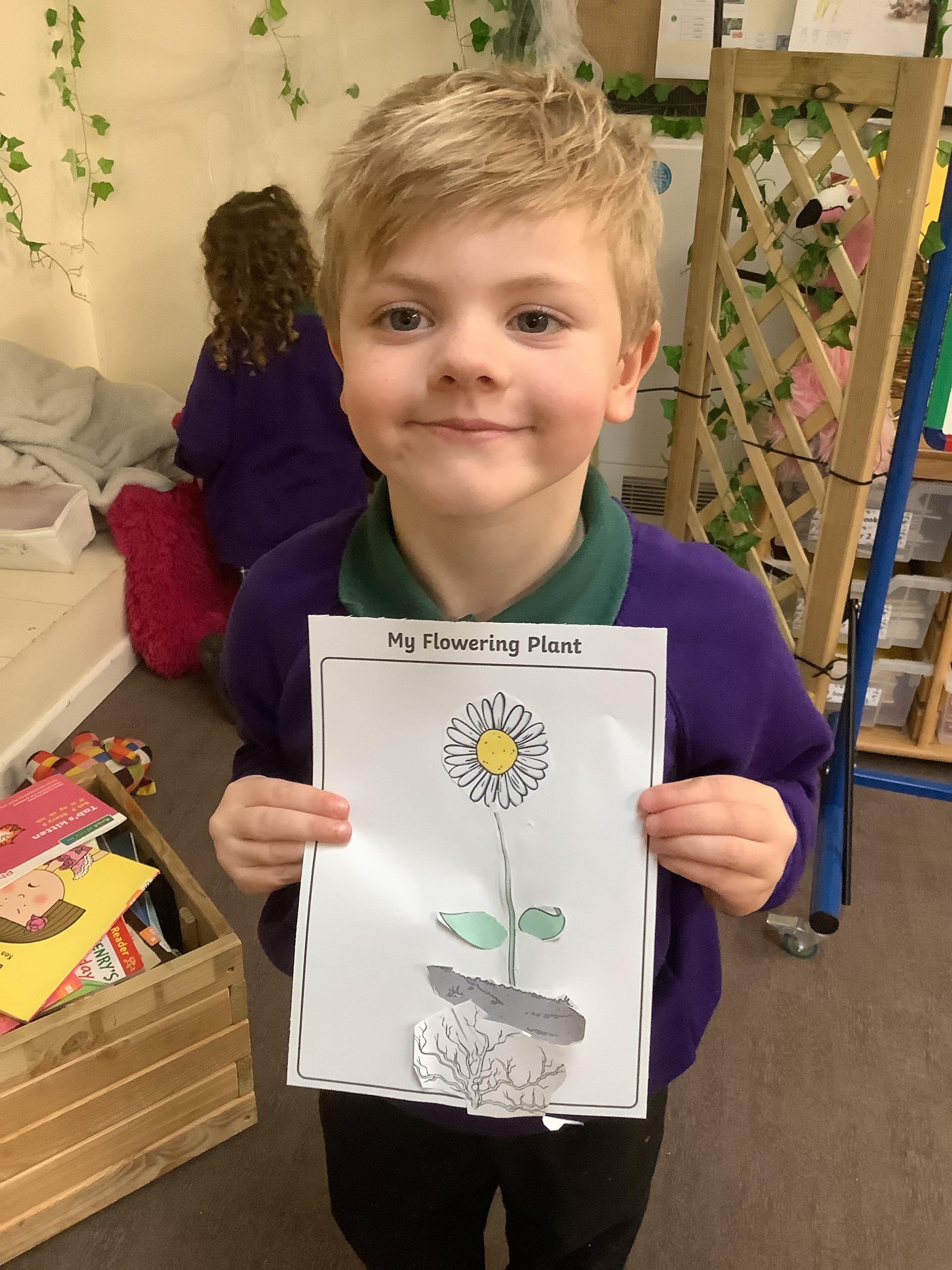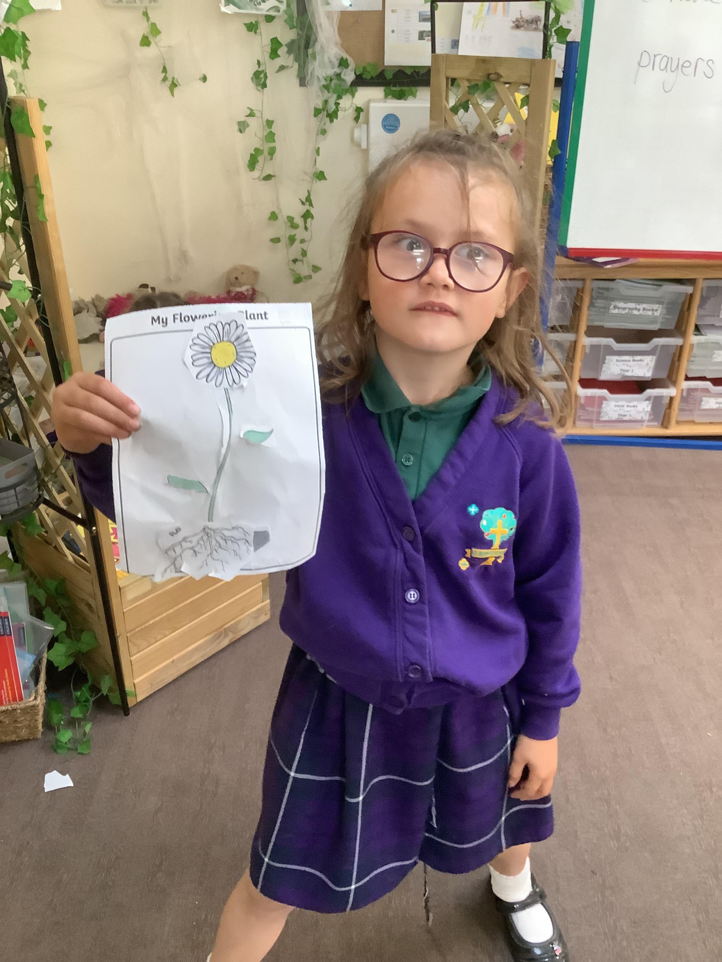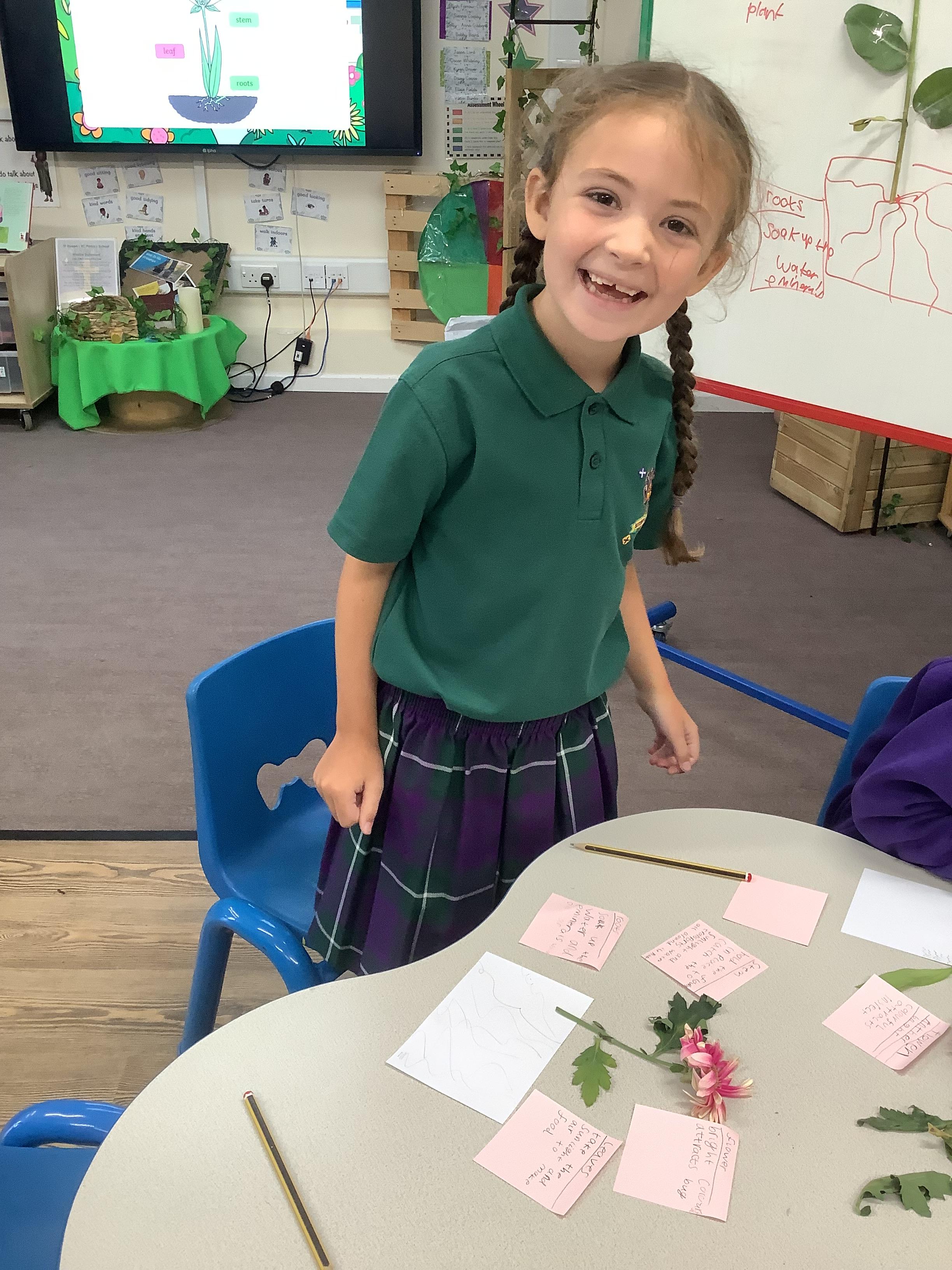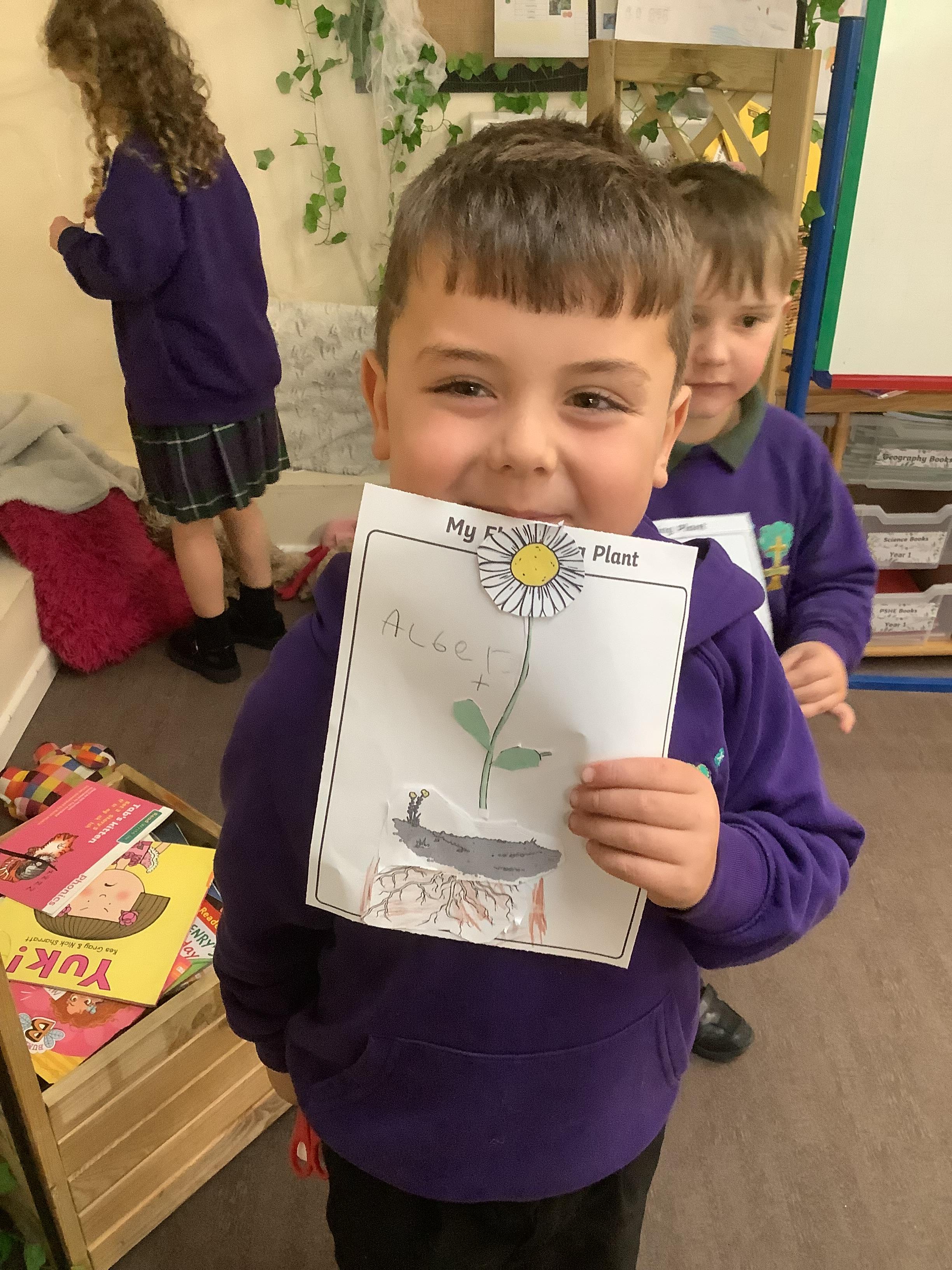 The children have been learning about plants. They used different flowers to create their own plant. Using post it notes the children then had to label and describe the different parts and functions of a plant.