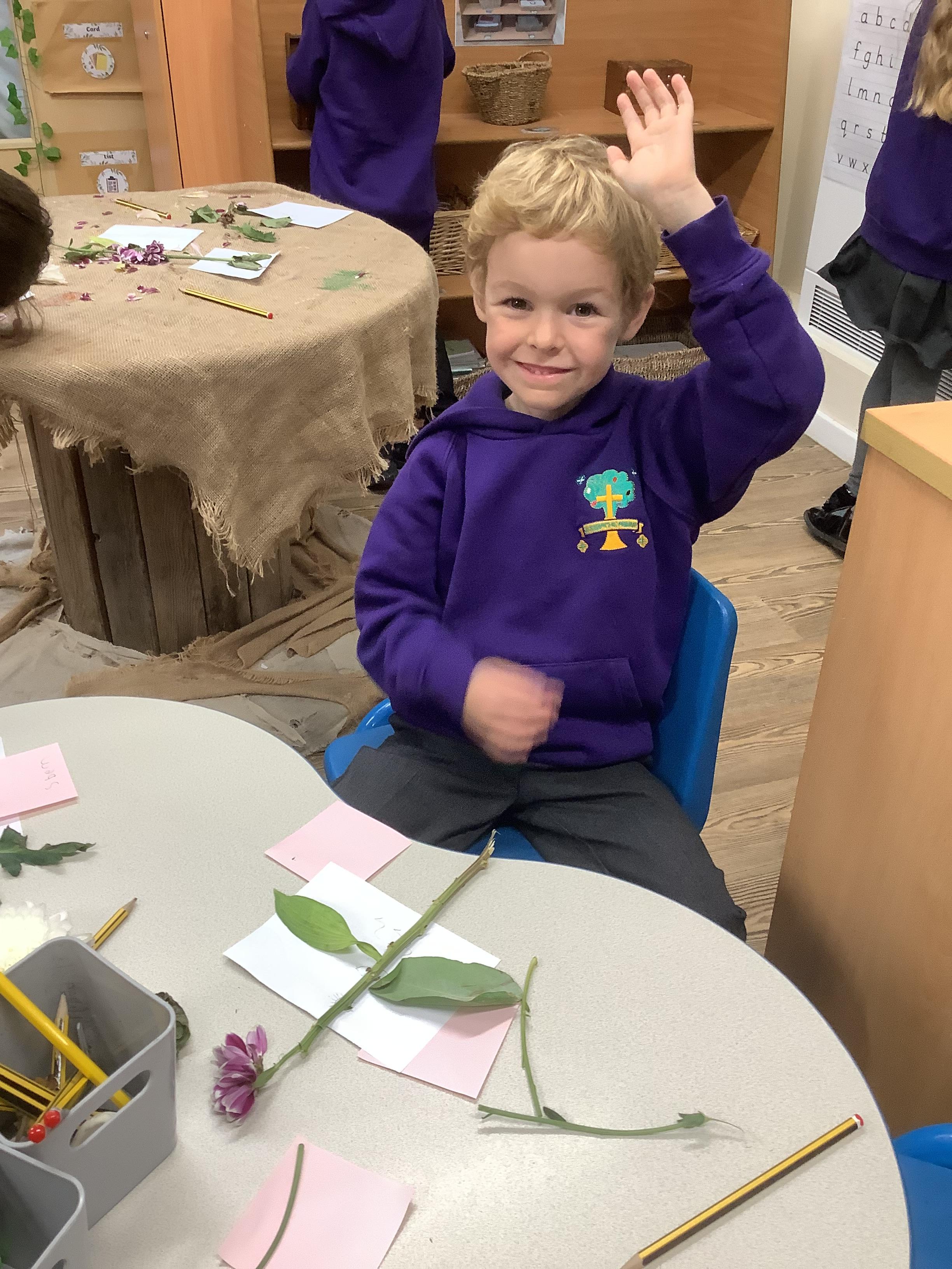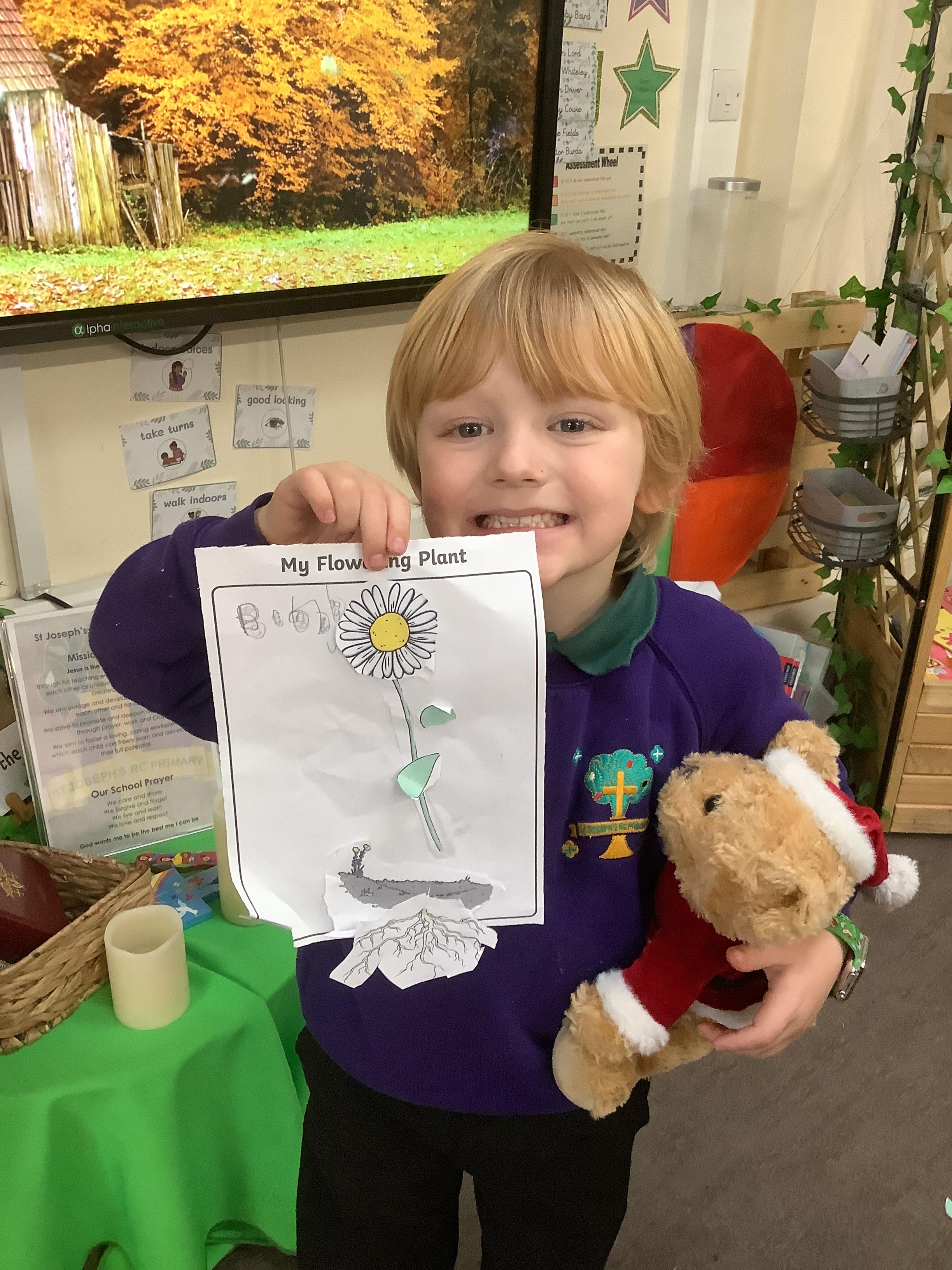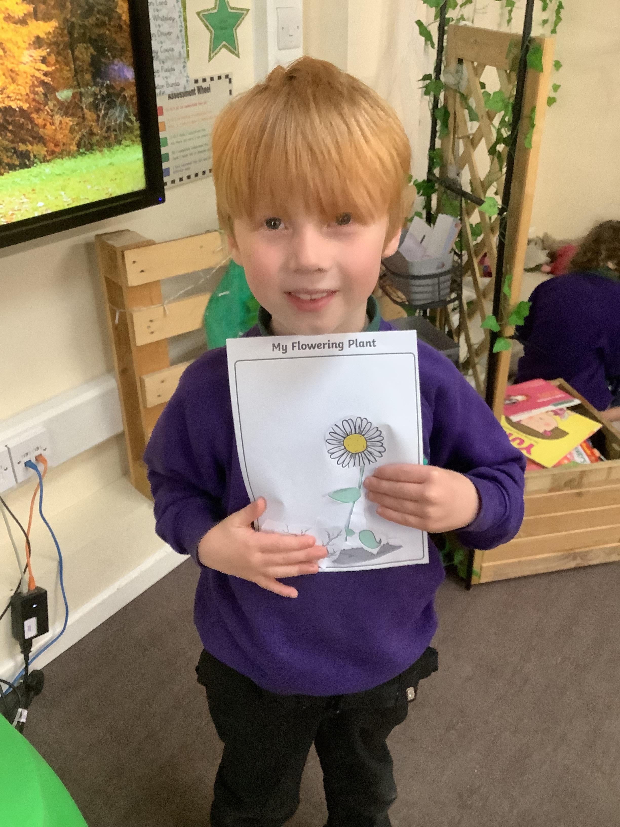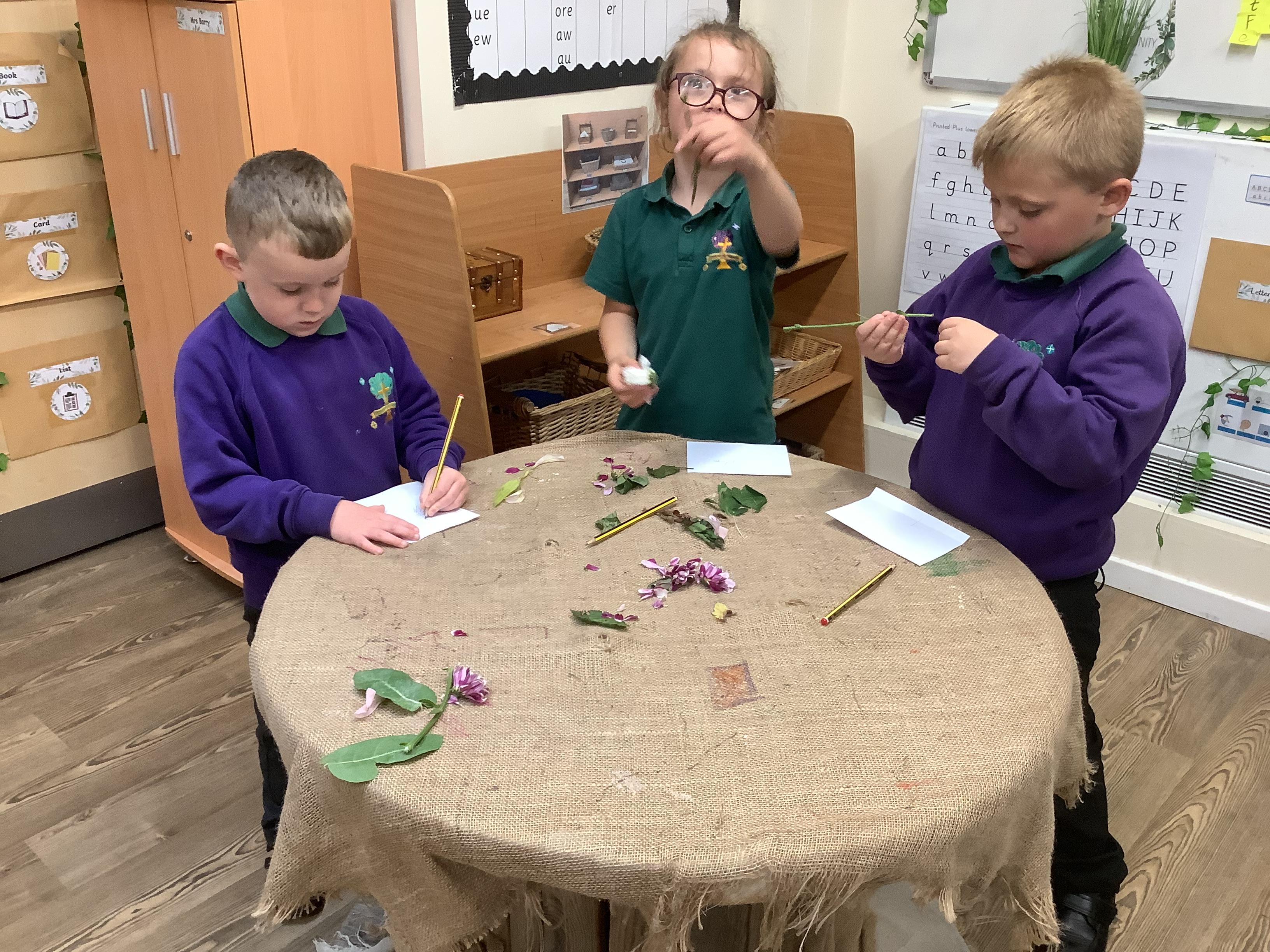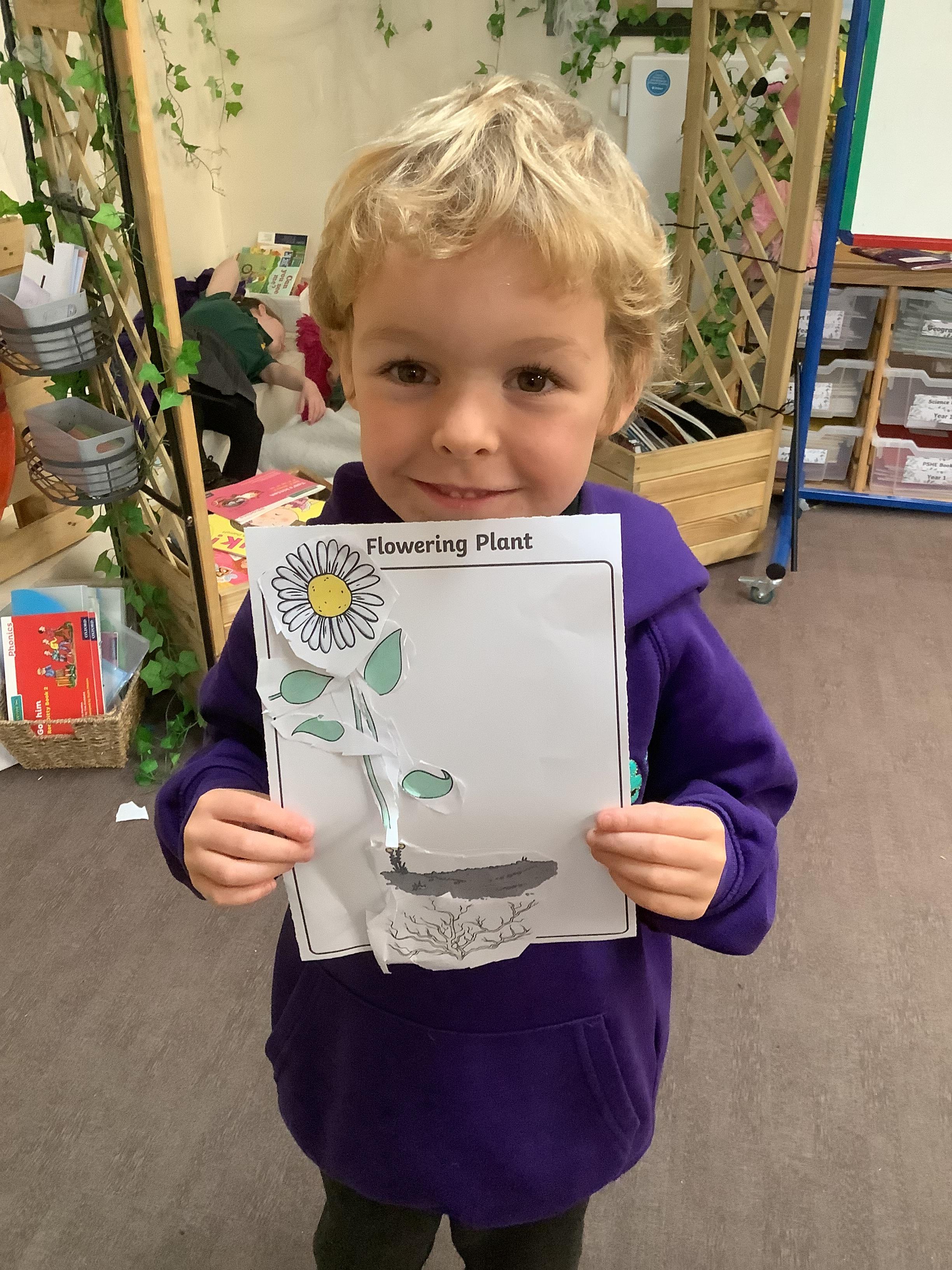 The children have been learning about plants. They used different flowers to create their own plant. Using post it notes the children then had to label and describe the different parts and functions of a plant.