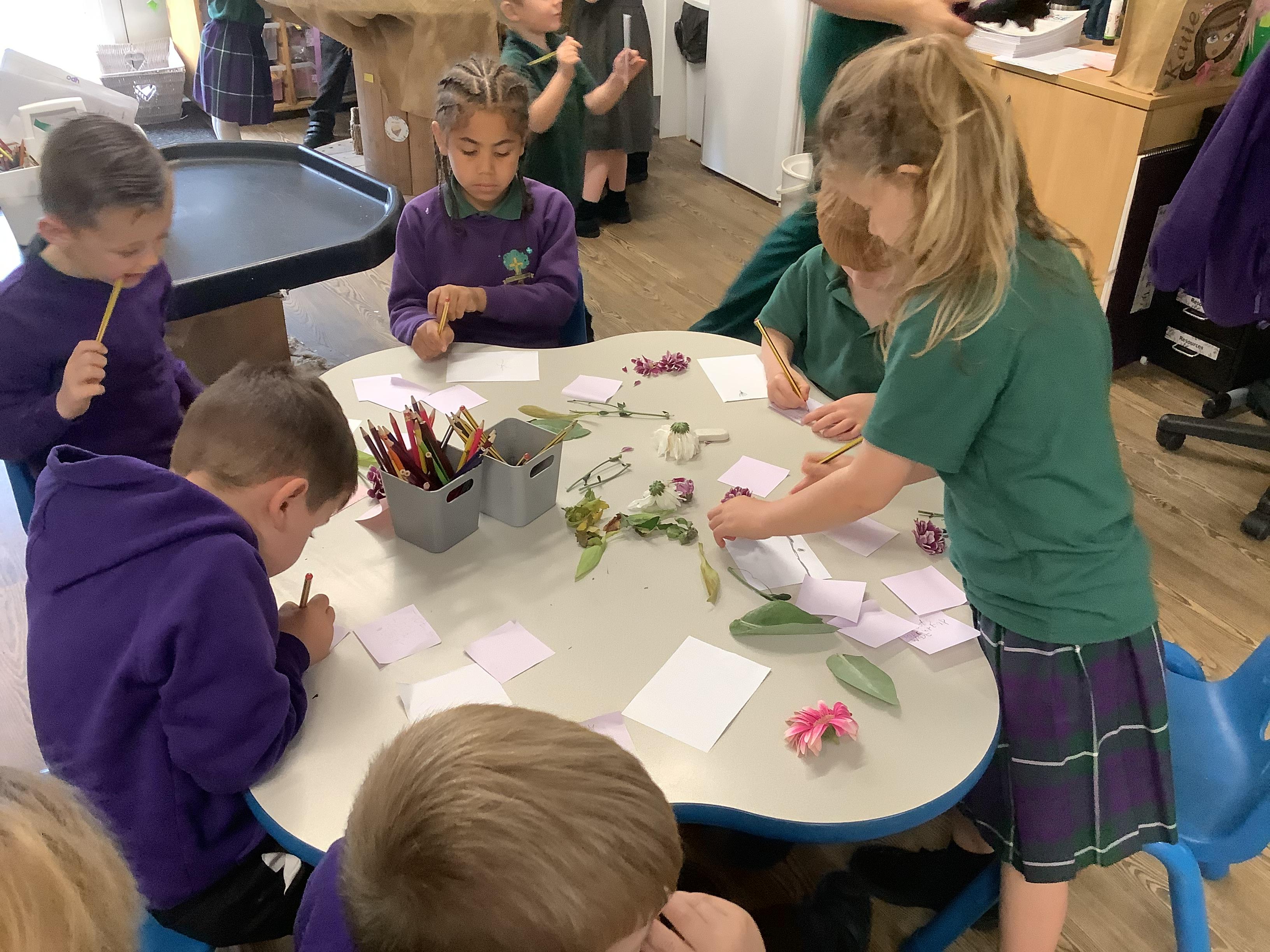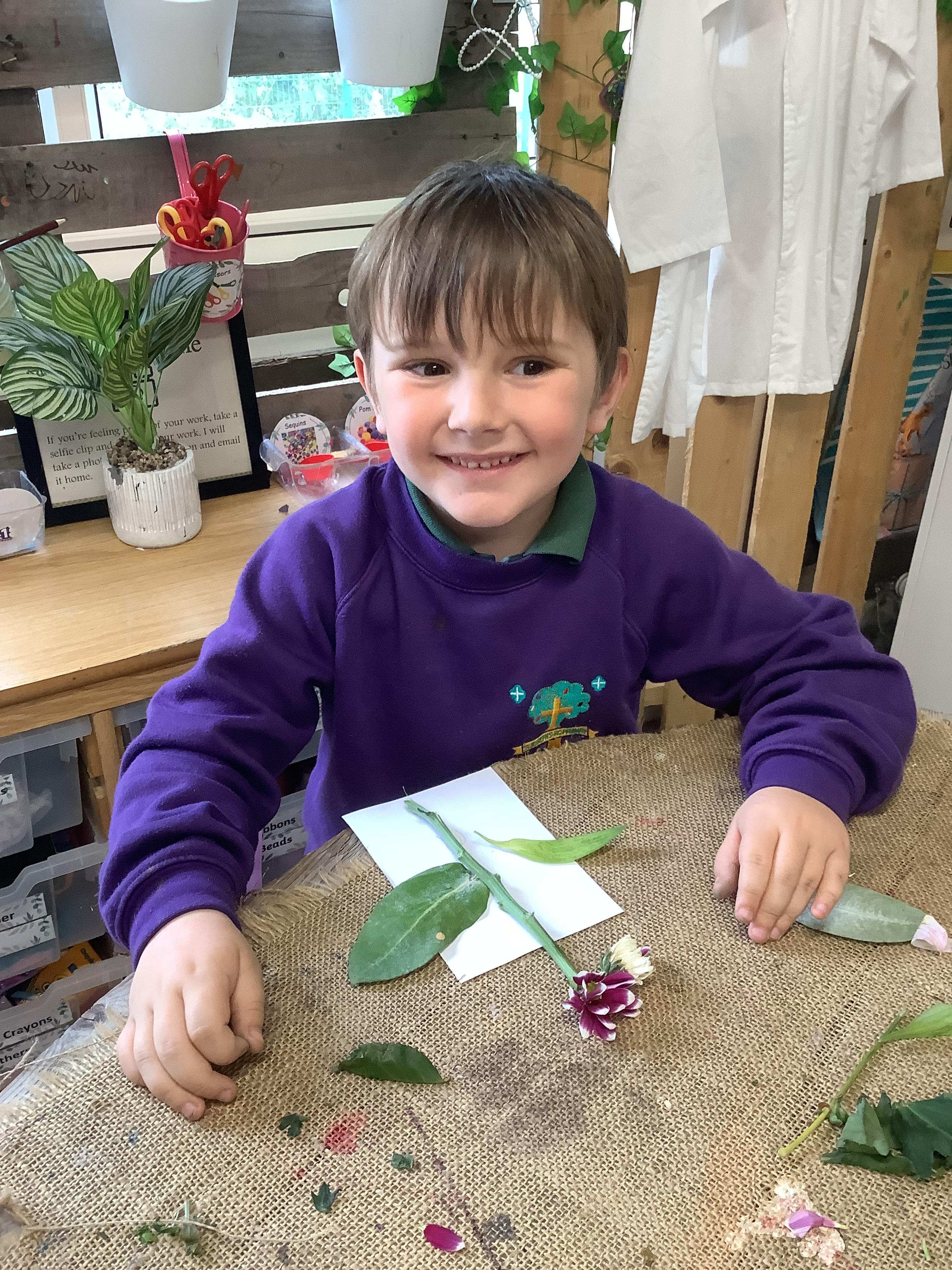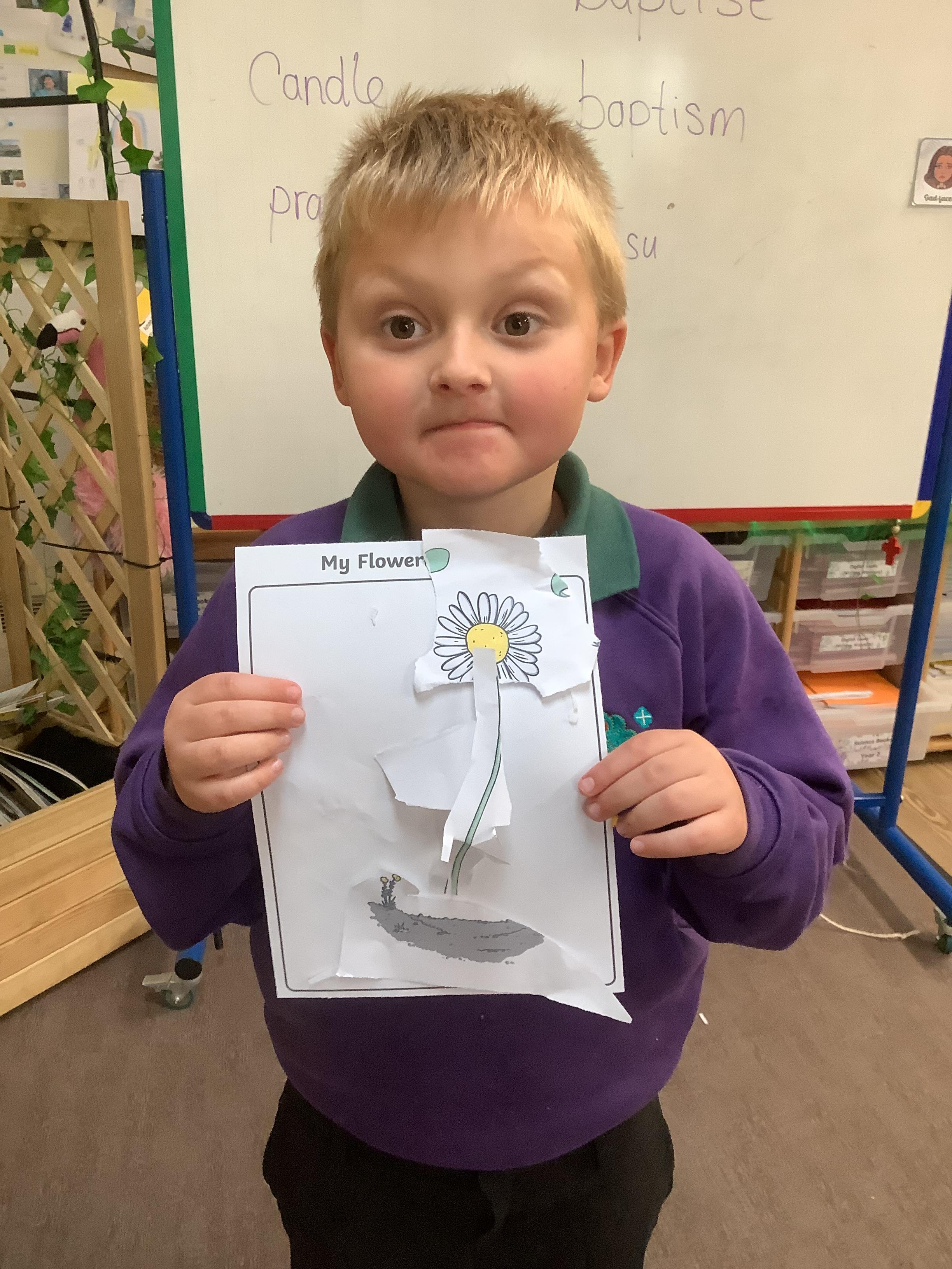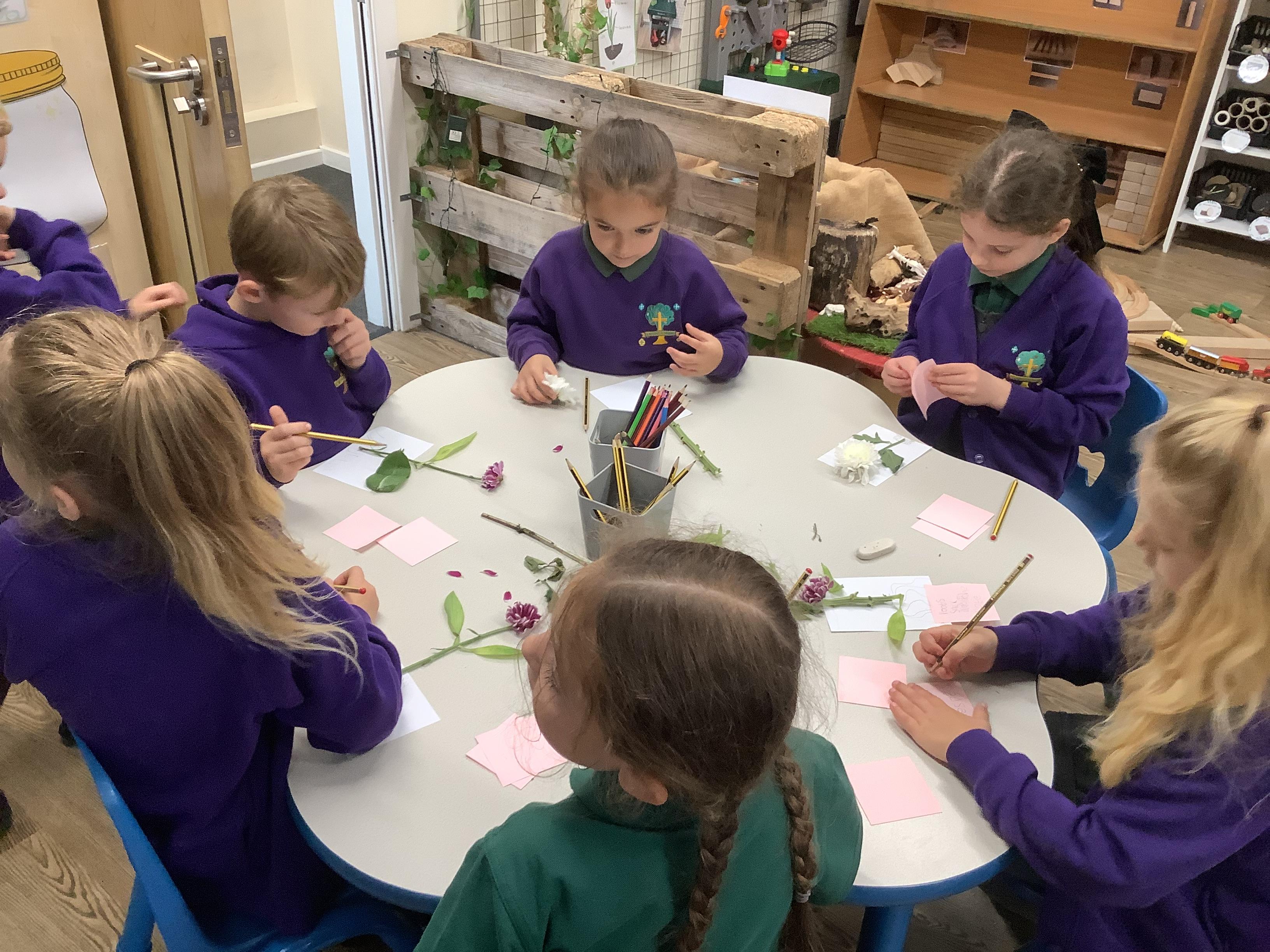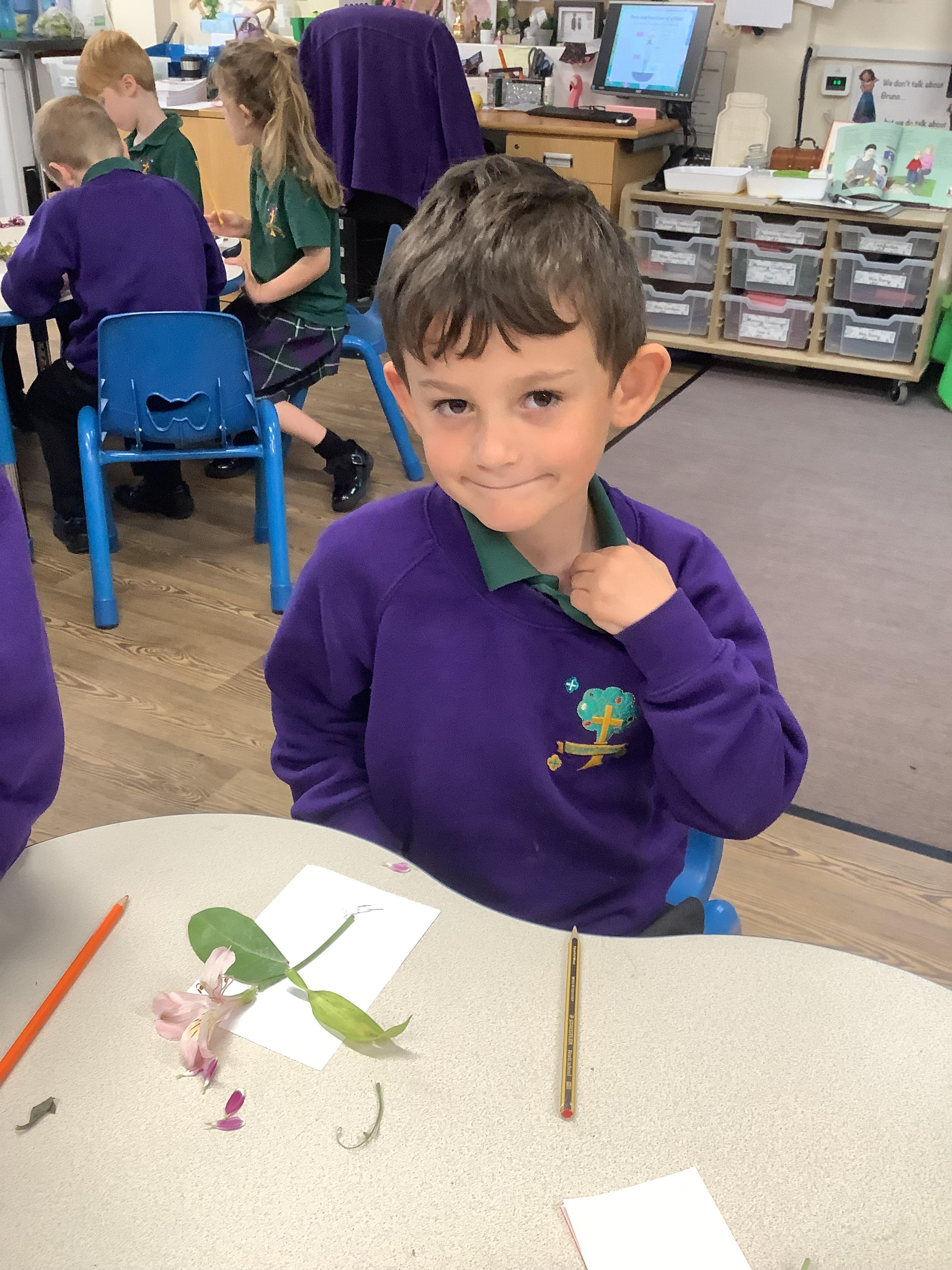 The children have been learning about plants. They used different flowers to create their own plant. Using post it notes the children then had to label and describe the different parts and functions of a plant.